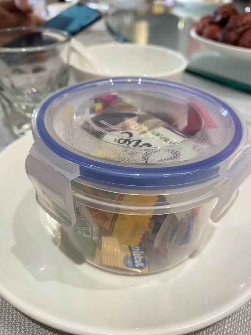 迷迭为宾客准备的喜糖盒是保鲜盒,婚宴结束很多朋友就用它实现光盘行动。