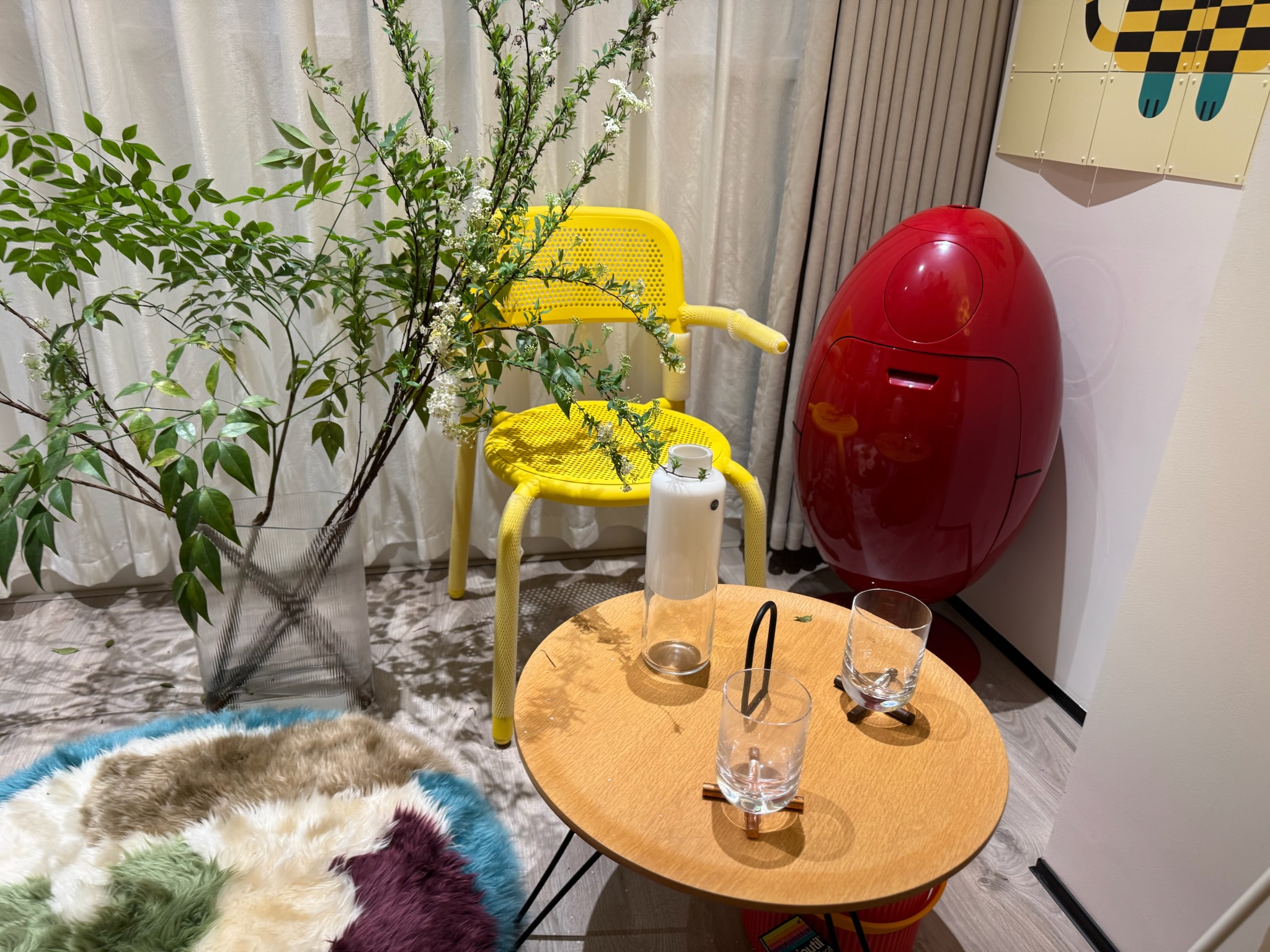书房的茶几替换成了一个桌子,也放上了更多没什么实用性的桌搭和鲜花