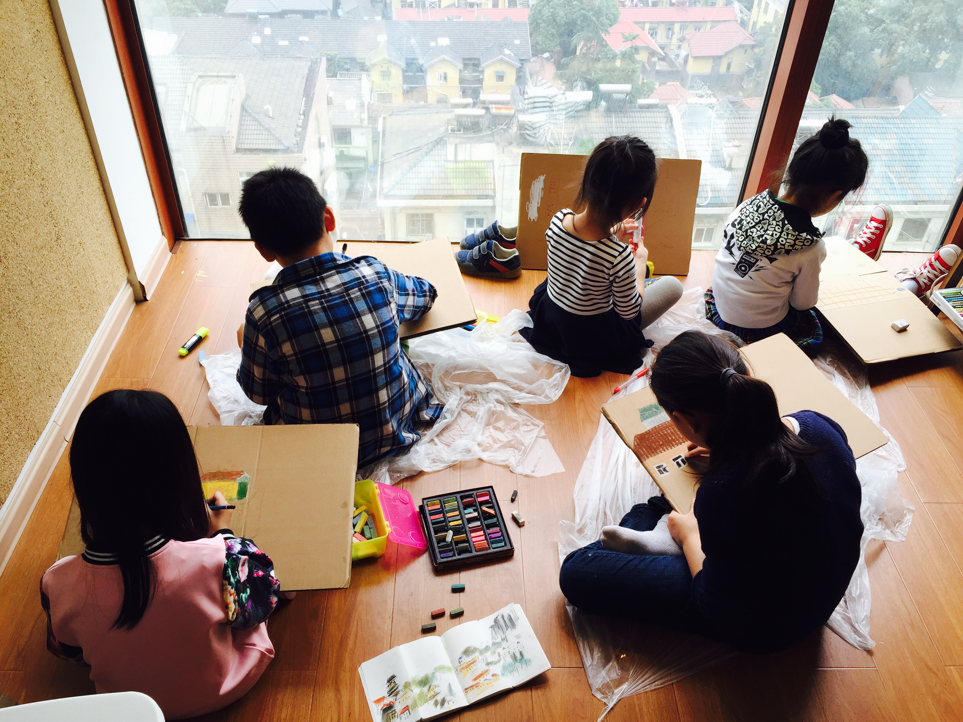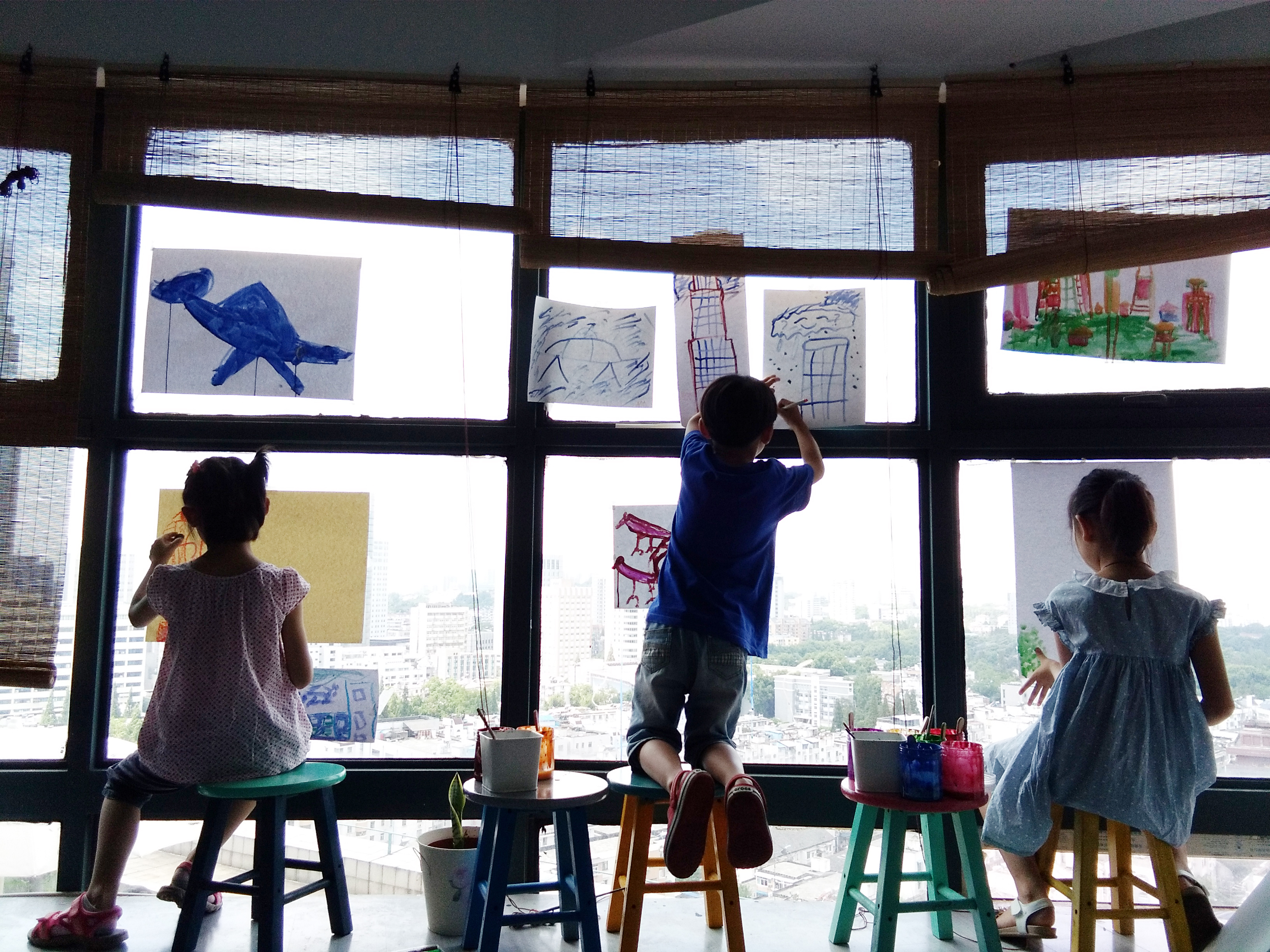 (小良老师和孩子们在一起绘画)