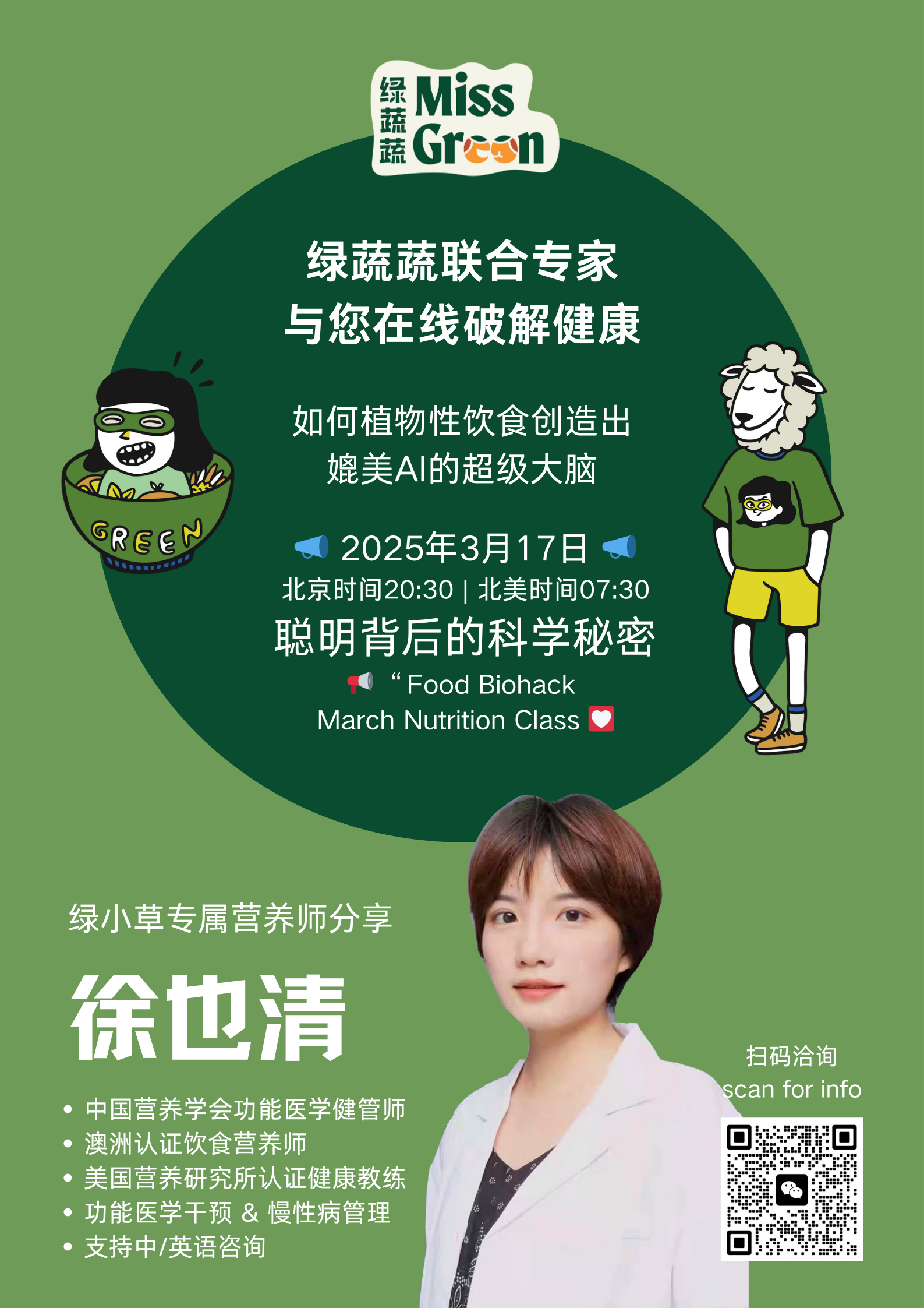 们,记得留言妳的健康故事,我们会在留言区中选出两位幸运的女性小伙伴获得我们3月17号免费线上课堂咨询一次绿小草三月会员制一枚资格!