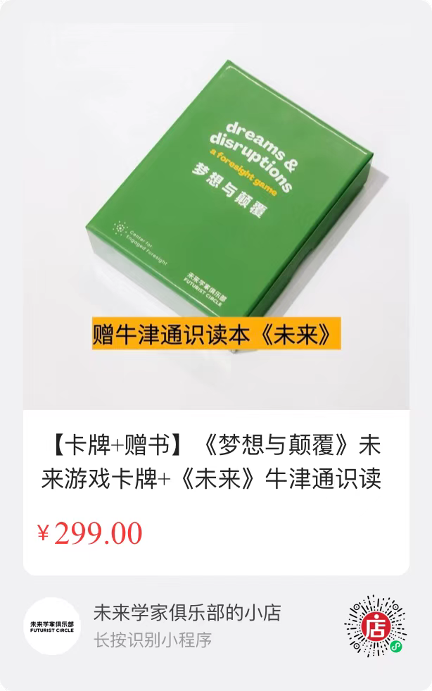 由国际著名未来学家舍尔曼·克鲁兹倾力打造,并由未来学家俱乐部引进及本地化的中国首款未来思维游戏,后续我们将推出配套服务futures gym,帮助大家一起来练习未来学的核心工具——情境规划(scenario planning),敬请期待!