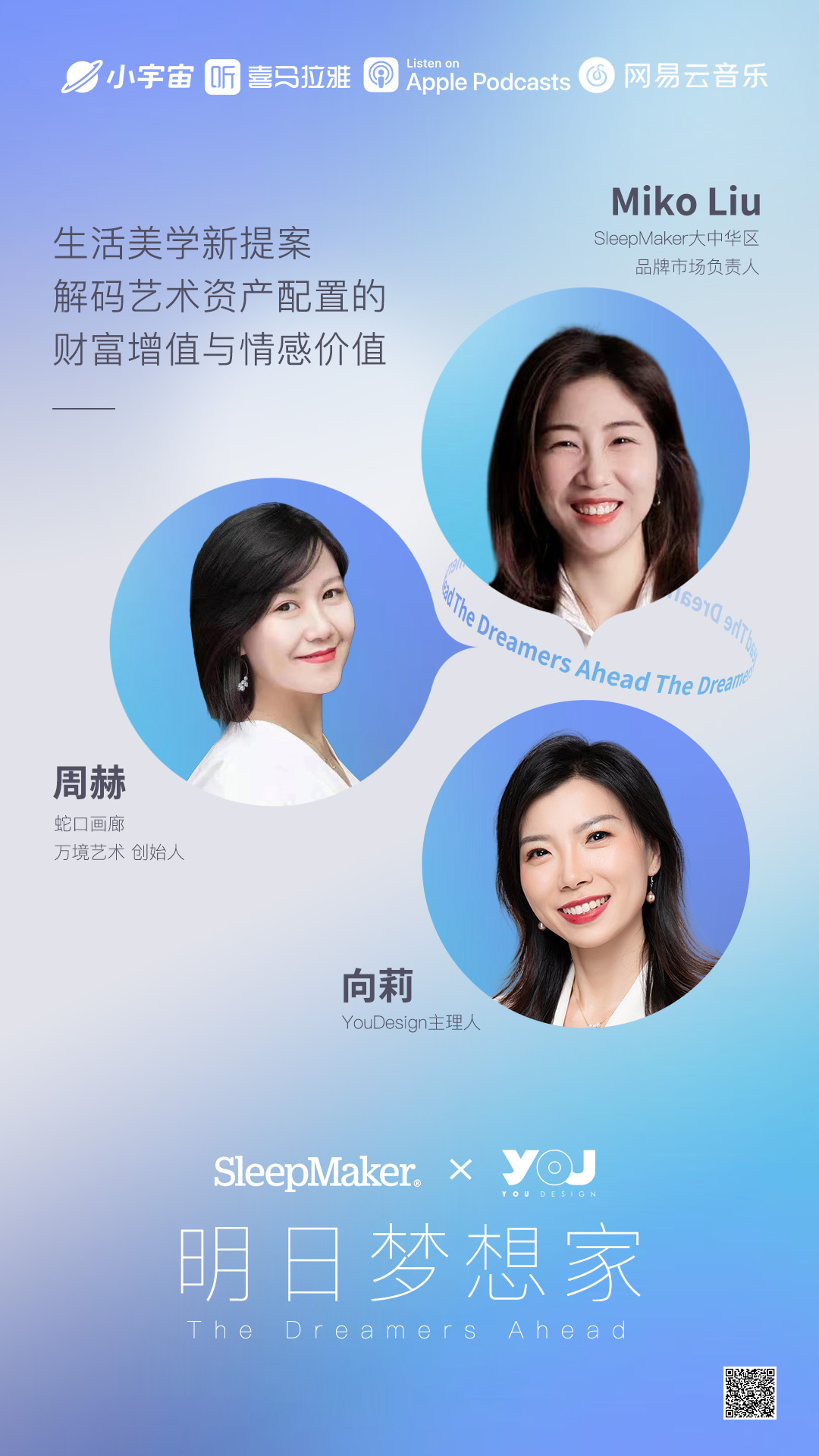 栏目主持:SleepMaker造梦者大中华区品牌总监 Miko Liu、设计/艺术自媒体博主,YOU DESIGN主理人向莉