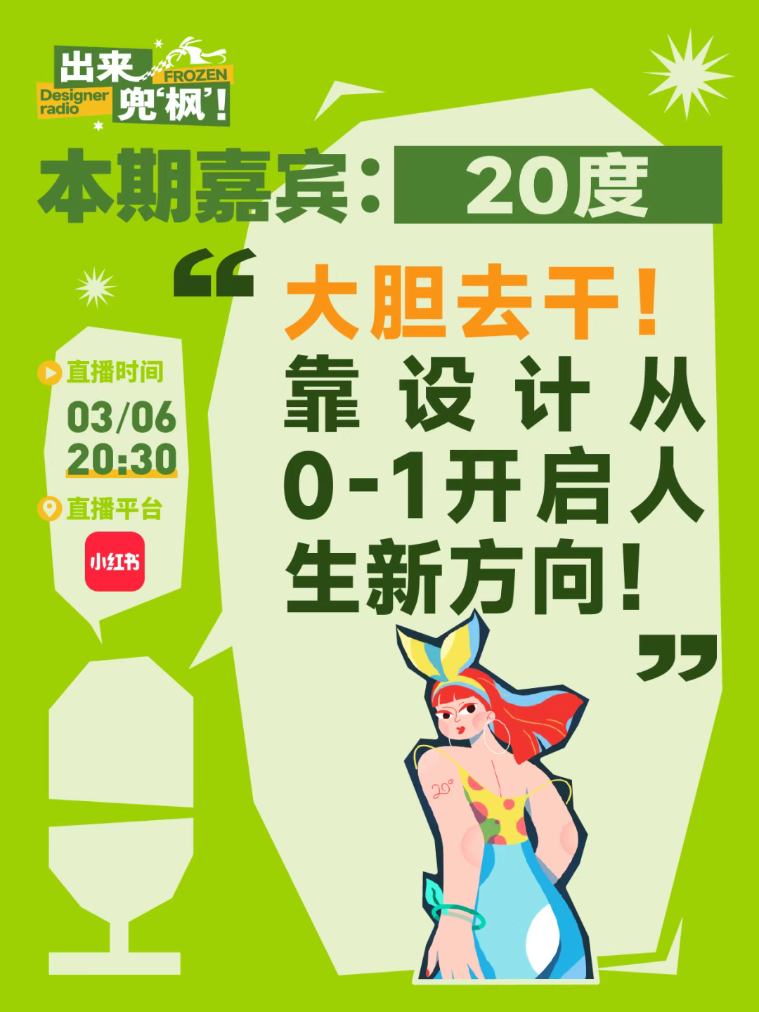 本期嘉宾——20度,金融类专业出身,却在设计行业有着六年经验的90后创业者——她经历过广告、游戏、二次元的行业经验后,又选择自我创业,已有两年,专注于设计就业指导,更在行业寒冬中摸索出了一套应对职业危机的生存法则。让我们听一听她的人生分享,在设计师就业方面,有着怎样的独家见解?