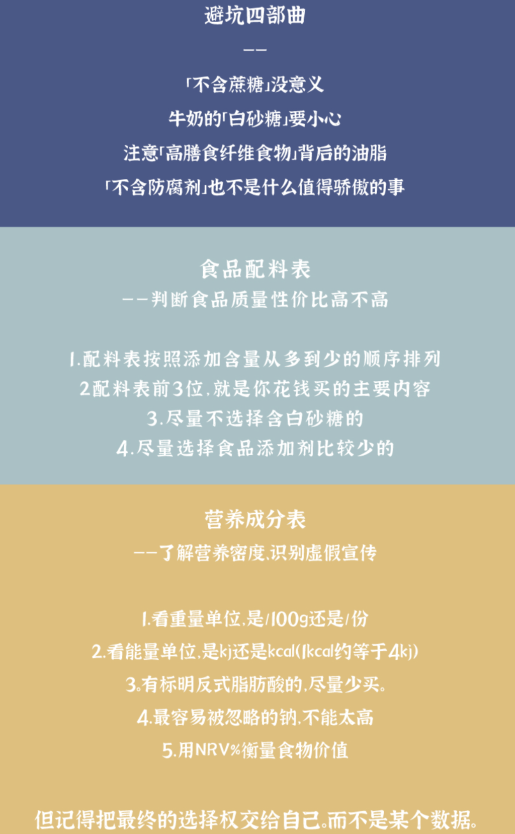 现代食品的营销话术与真实营养有着巨大的鸿沟,我们经常被包装广告误导而忽略配料表与营养成分的真实数据。我们应该回归食品本质,通过食品配料表和营养成分表来建立科学的消费决策。
