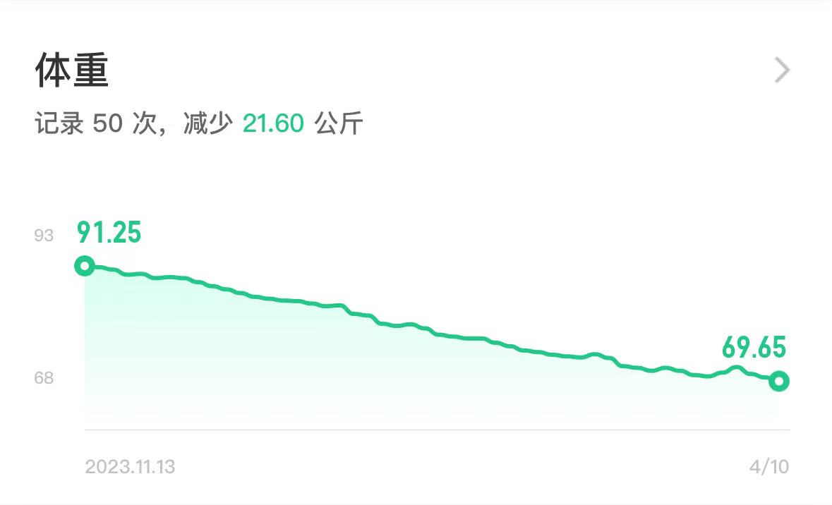 从2023年11月到2024年4月,我的体重从95公斤降至69公斤,成功甩下了50斤的负担,而这也大概是我做过的最容易但又最有成就感的事。