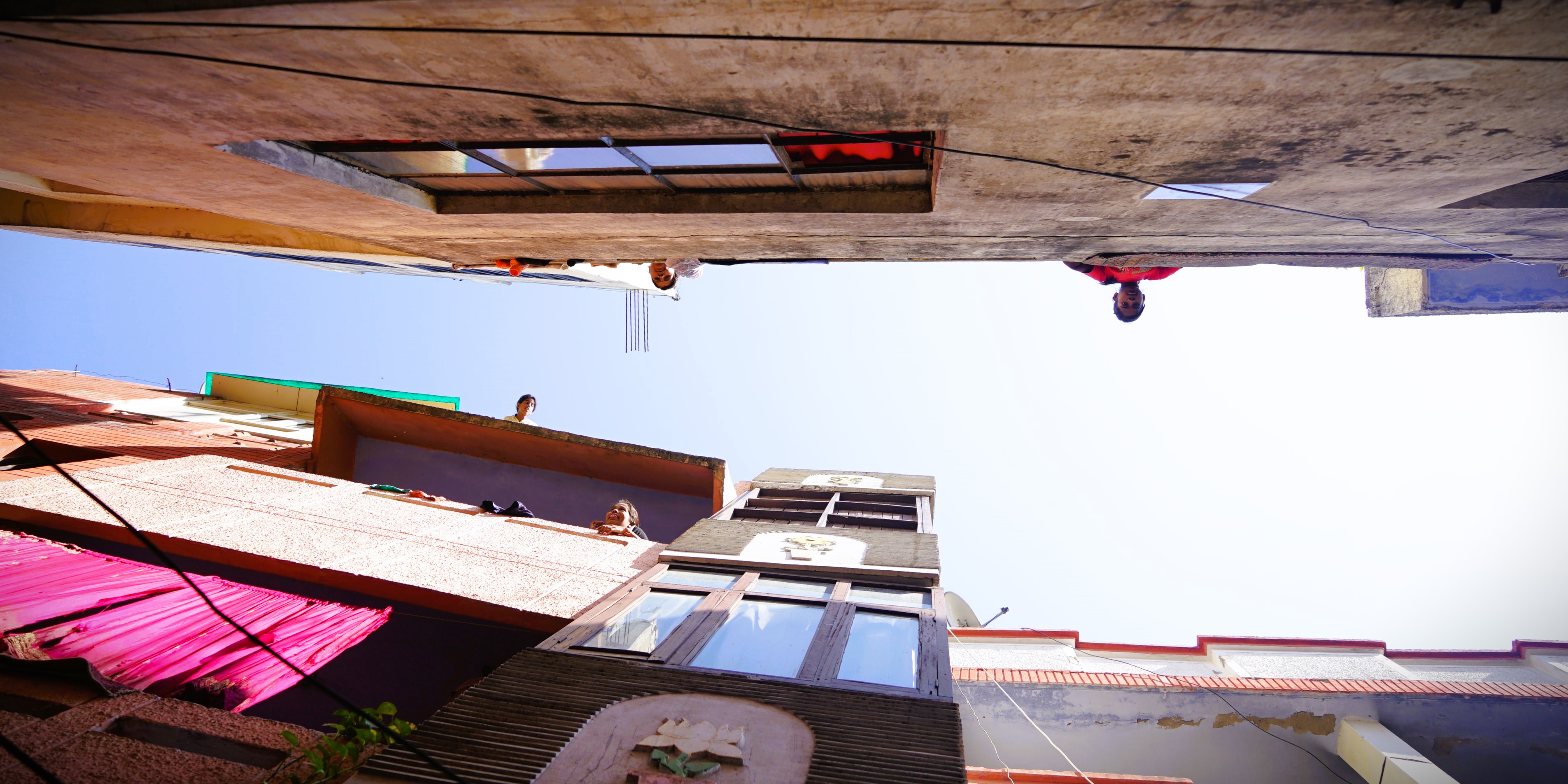 上图/在拍摄城中村的“一线天”时因好奇探头而入镜的当地人 (Chandigarh, India, 2017, cr 美林)