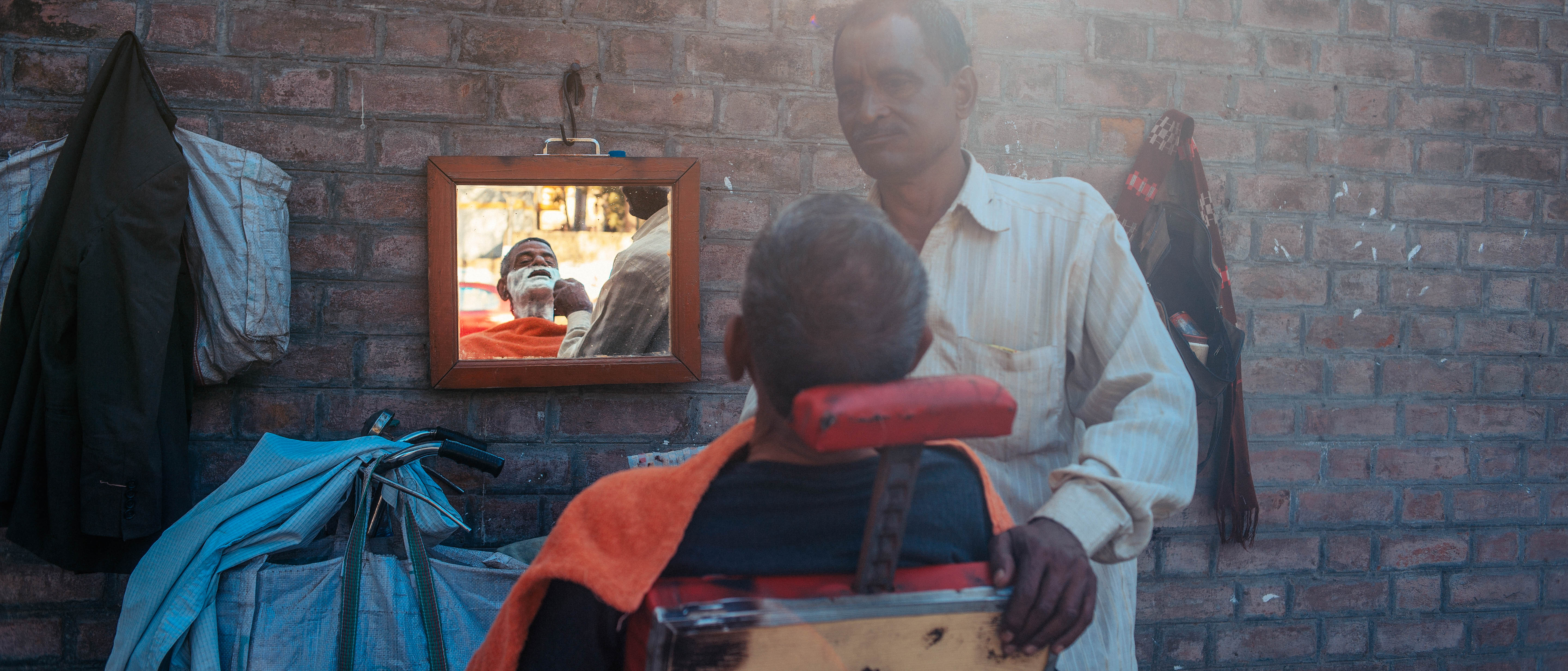 上图/在街头理发店刮胡子的男人(Ahemedabad, India, 2017, cr 子一)