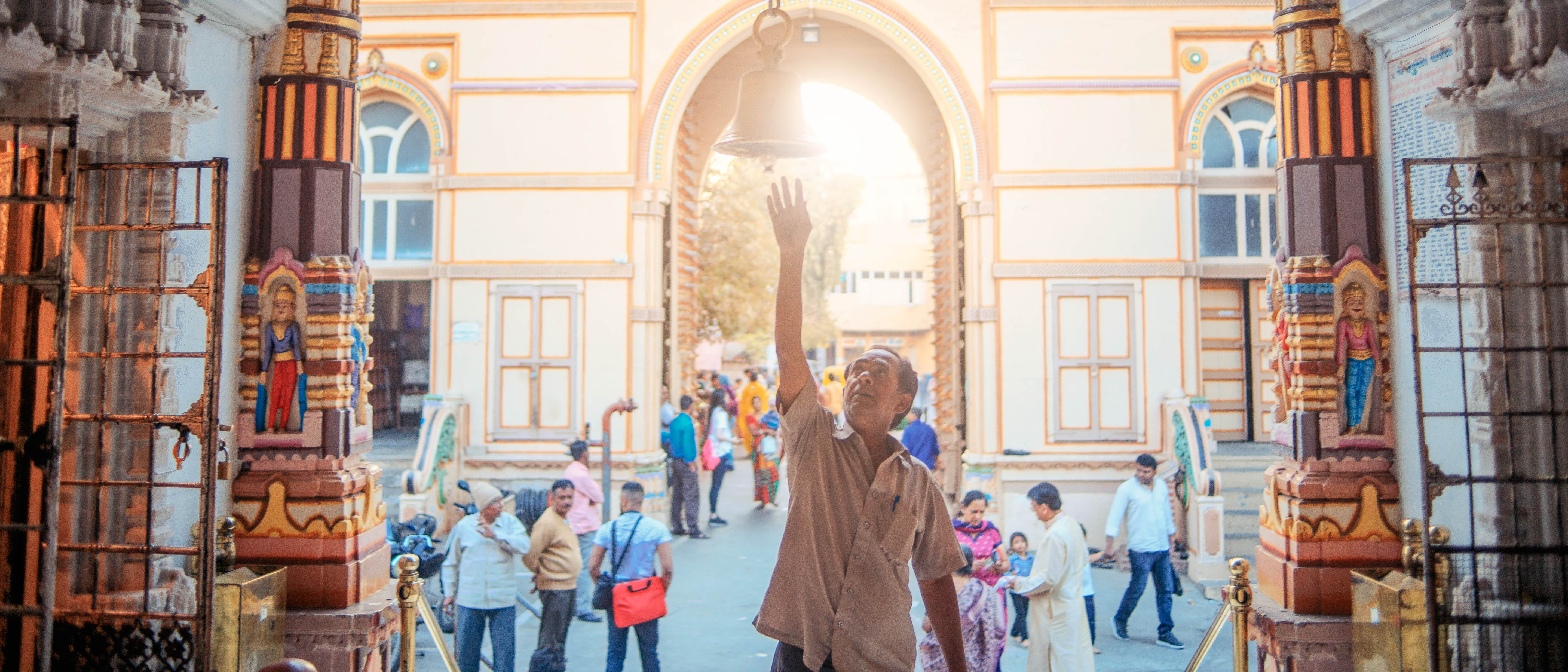 上图/在Shree Swaminarayan Mandir Kalupur摇圣铃的信徒 (Ahemedabad, India, 2017, cr 子一)