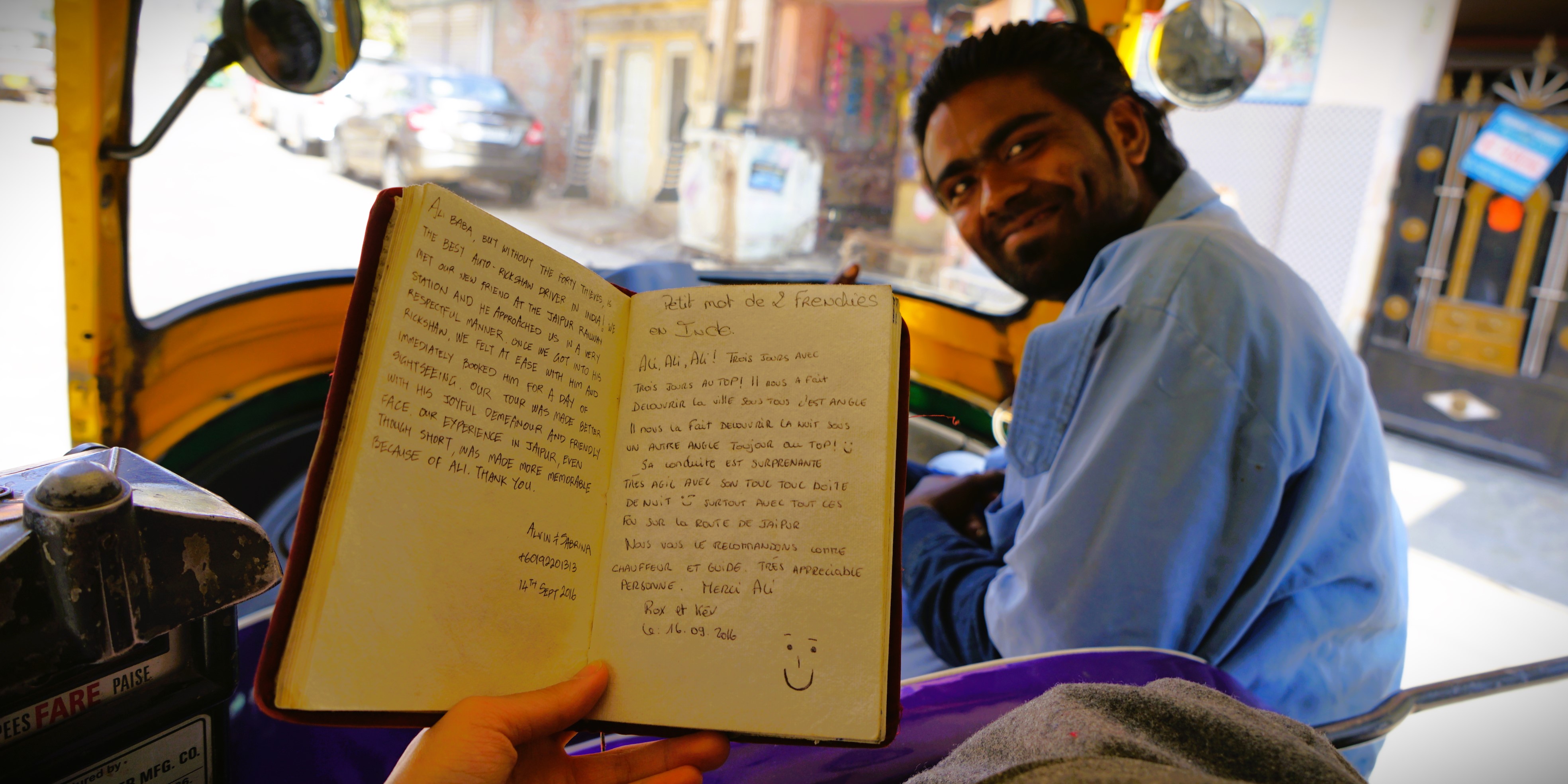 上图/Tuktuk小哥的外国游客留言本 (Ahemedabad, India, 2017, cr 美林)