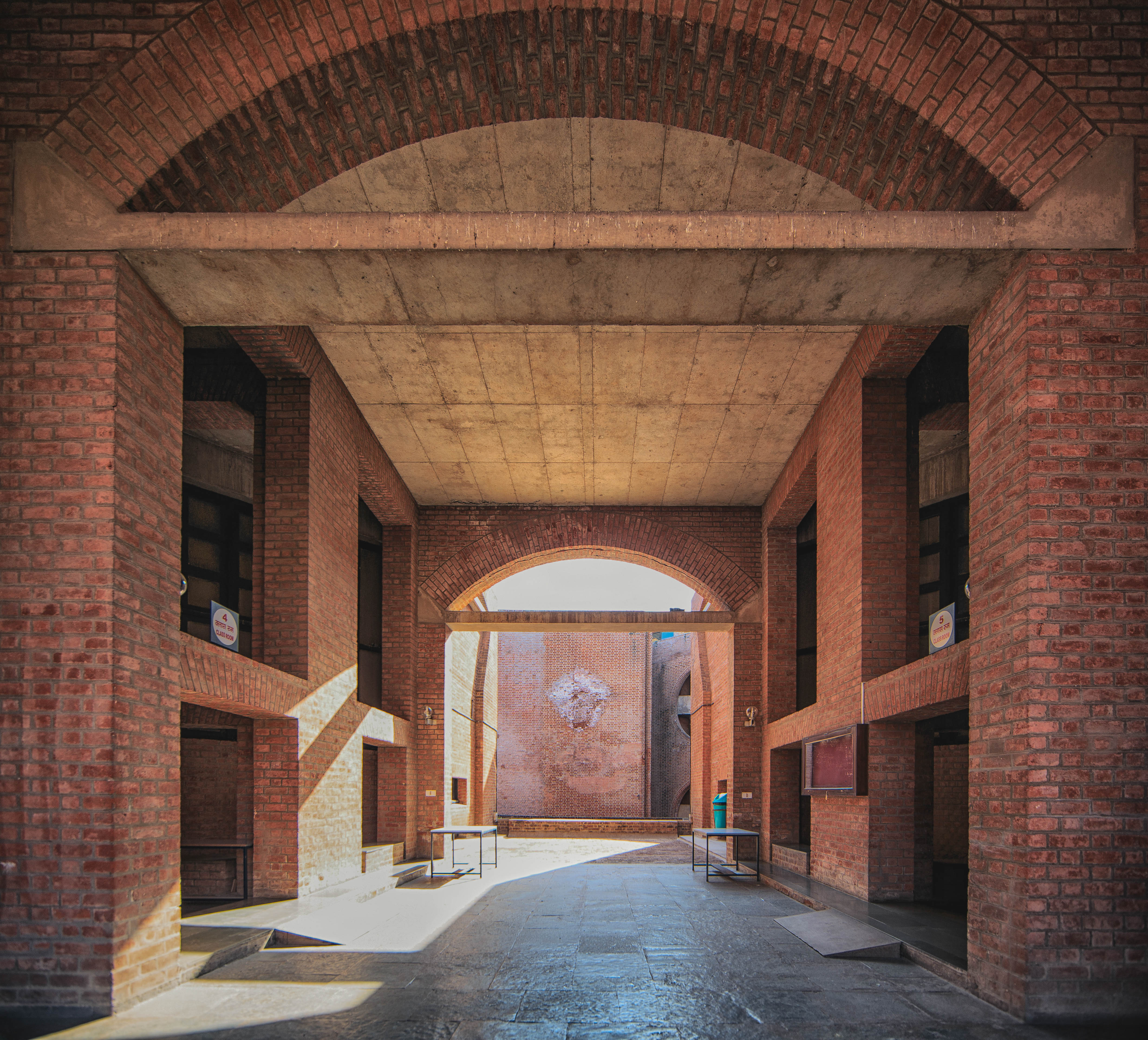 上图/印度管理学院的拱形走廊(Ahemedabad, India, 2017, cr 美林)