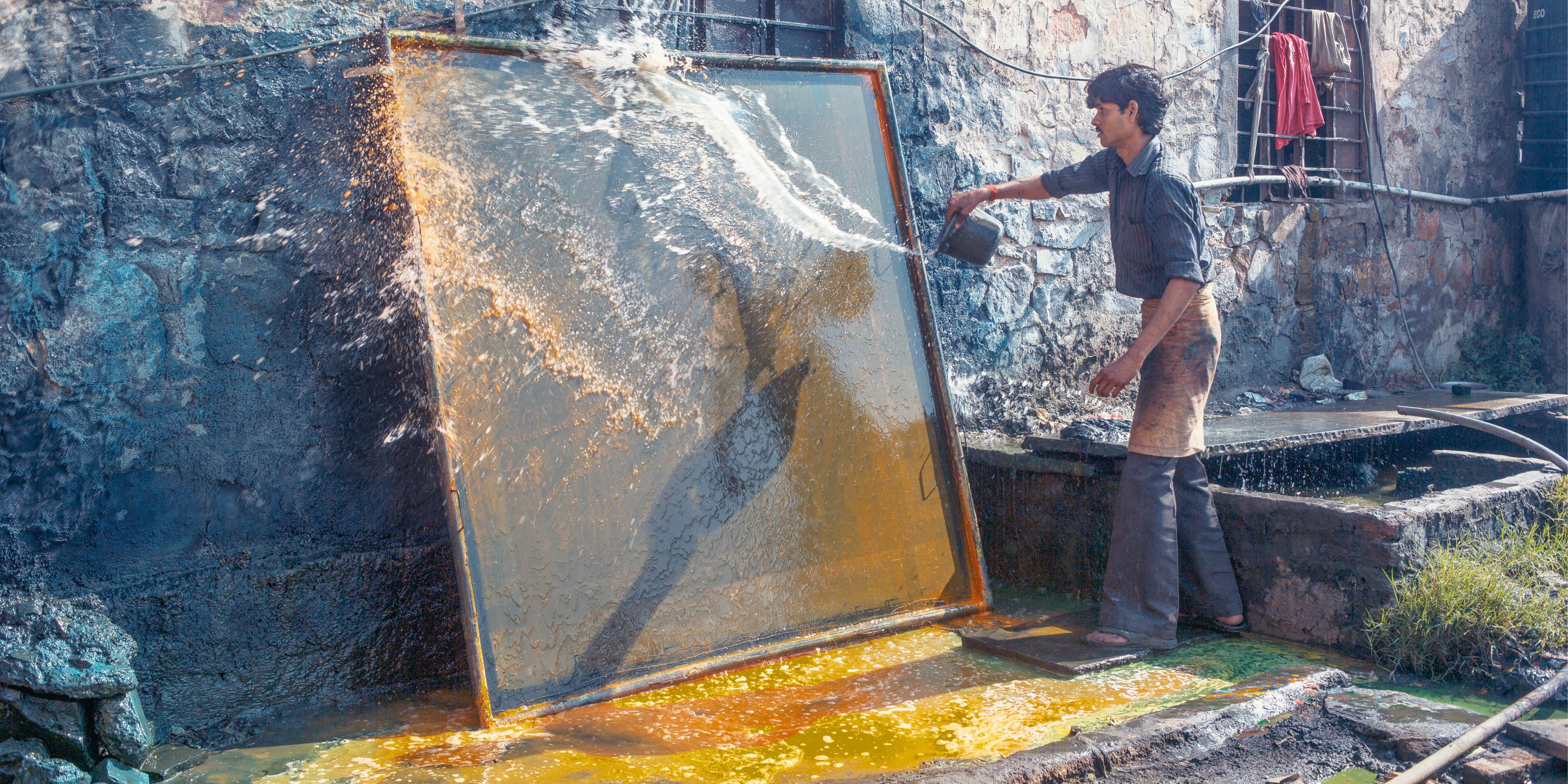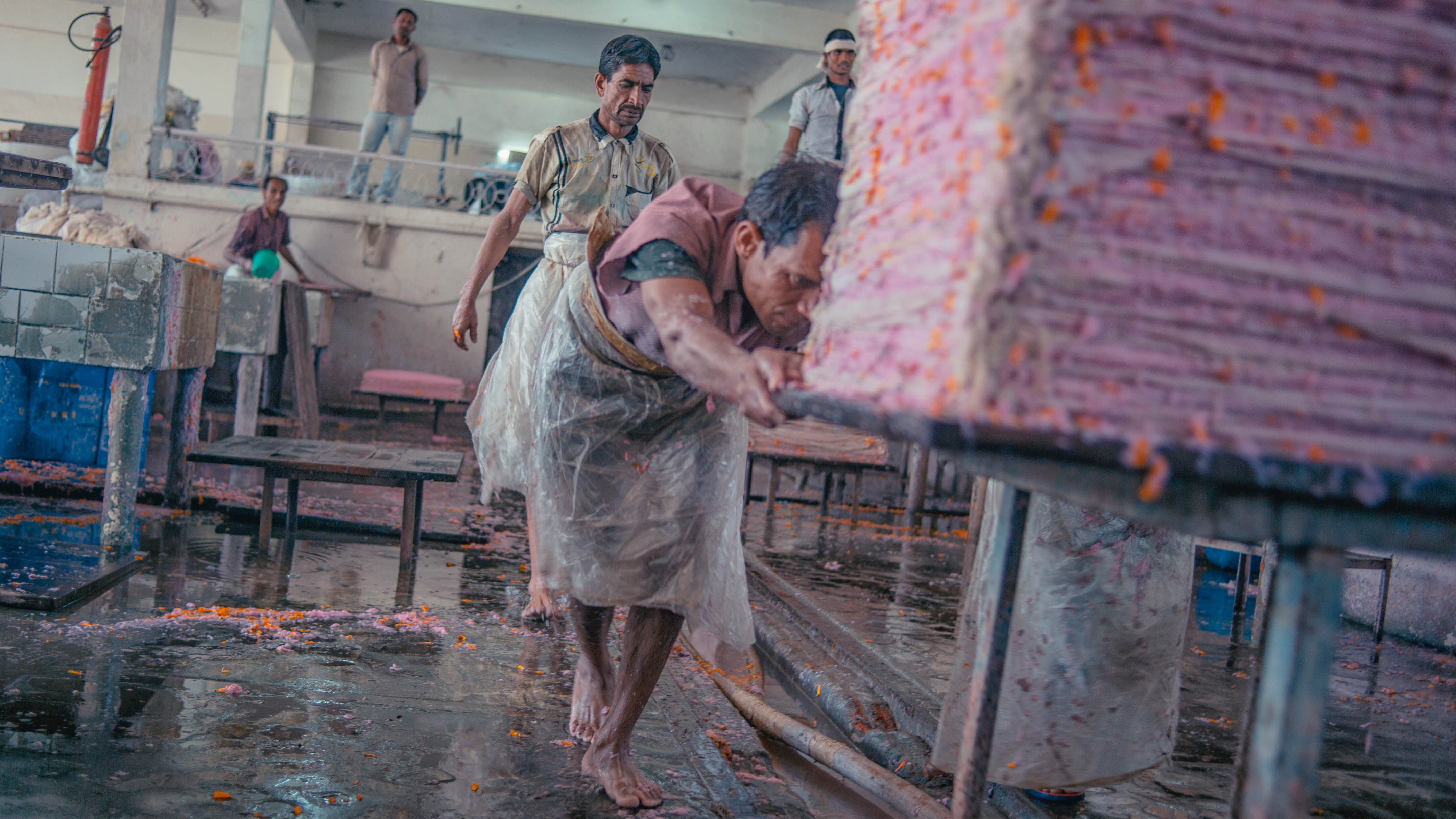 上图/浸泡在浆洗池里的工人 (Jaipur, India, 2017, cr 美林)