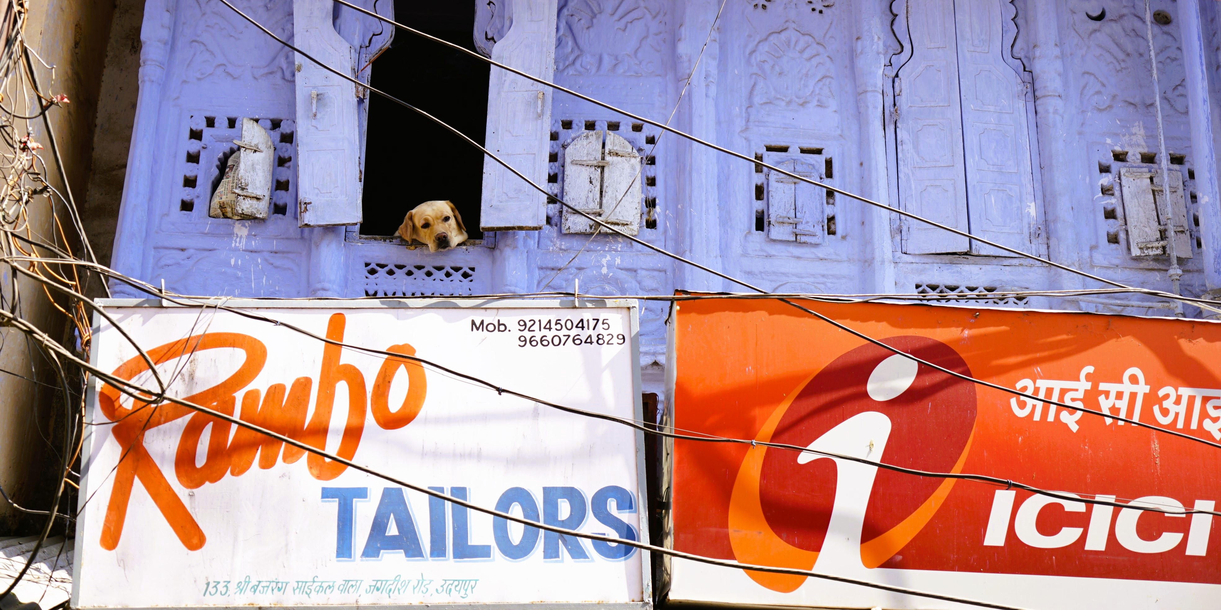 上图/在店铺二楼小憩的狗 (Udaipur, India, 2017, cr 美林)