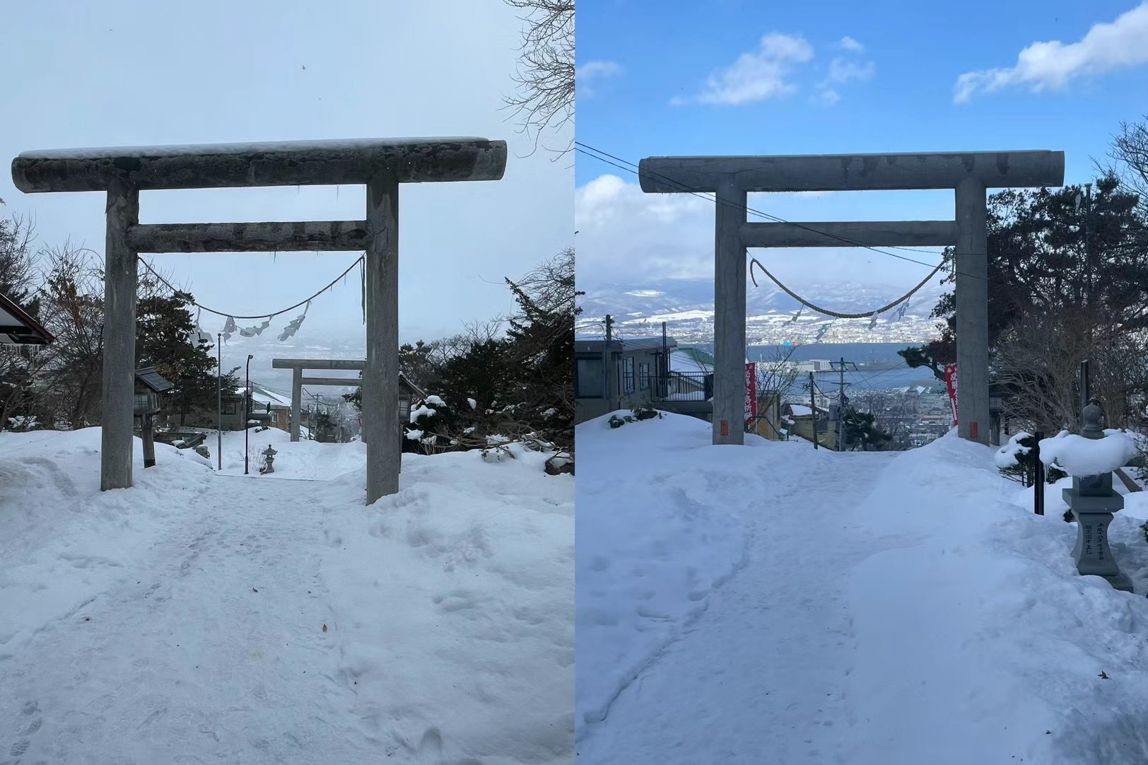 23:50 山上大神宫,俯瞰漫天大雪下的函馆