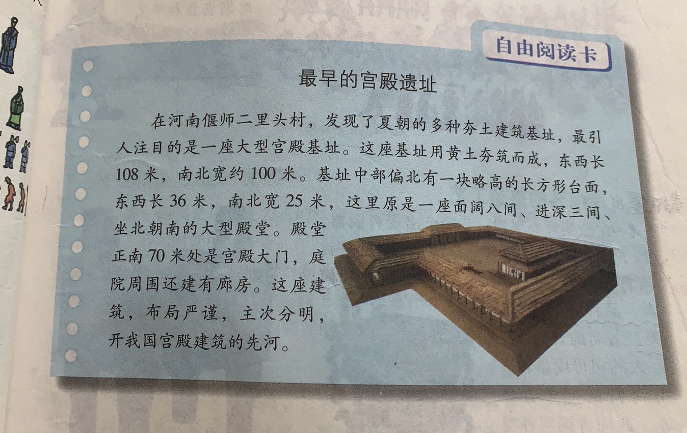 耳朵之后翻了初中历史书,确实有二里头中发现的最早的宫殿图片