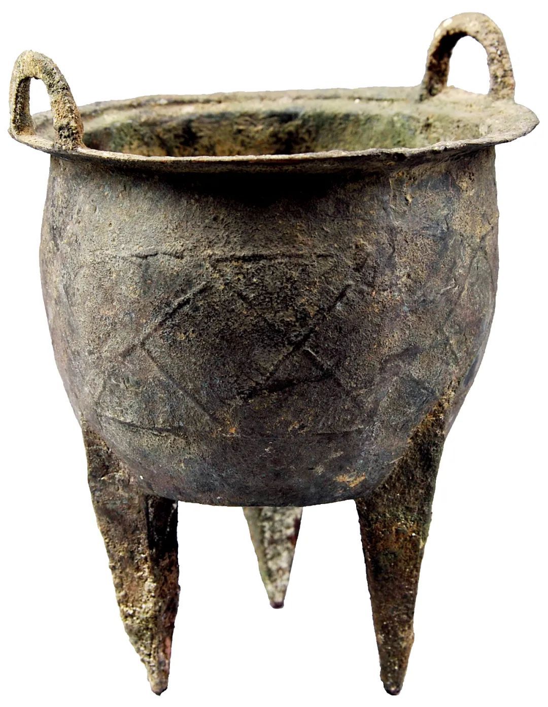 1987年出土于二里头遗址的网格纹铜鼎是目前该遗址出土的唯一一件青铜鼎,也是迄今为止已知的我国最早的青铜鼎,被称为“中华第一鼎”,其高20厘米,最大直径为15.3厘米,底径10厘米,厚仅0.15厘米,折沿双耳,垂腹平底,三足为四棱锥状,腹部装饰带状网格纹。 该鼎虽然与青铜爵一样使用了复合范技术,但制作相对粗糙,底部有明显的铸残修补痕迹,反映了这一时期铸造工艺复杂的铜容器还属于初创的阶段。
