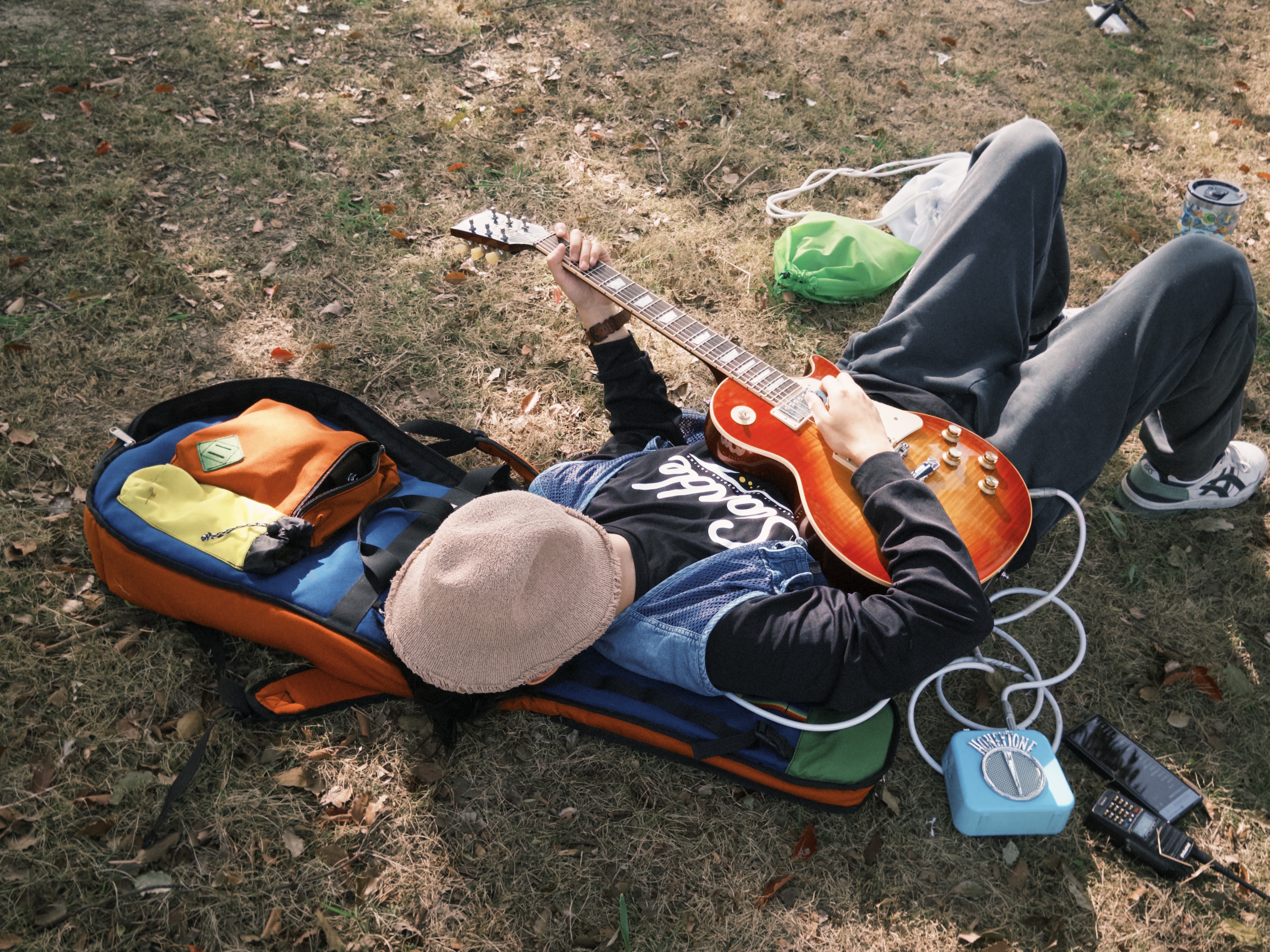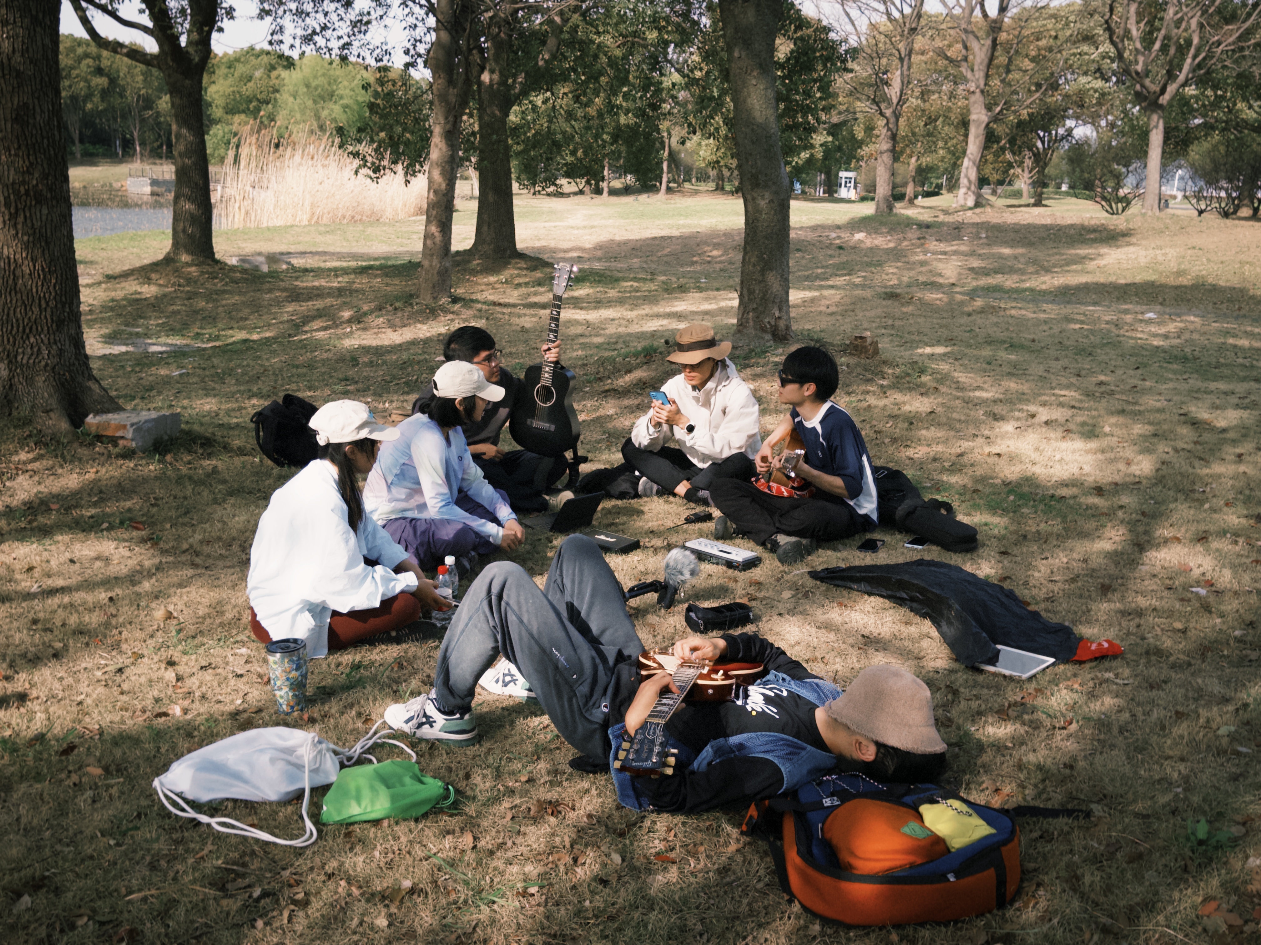 在山脚下随便找的一块空地,拿出各自的家伙,开始惬意的music time!