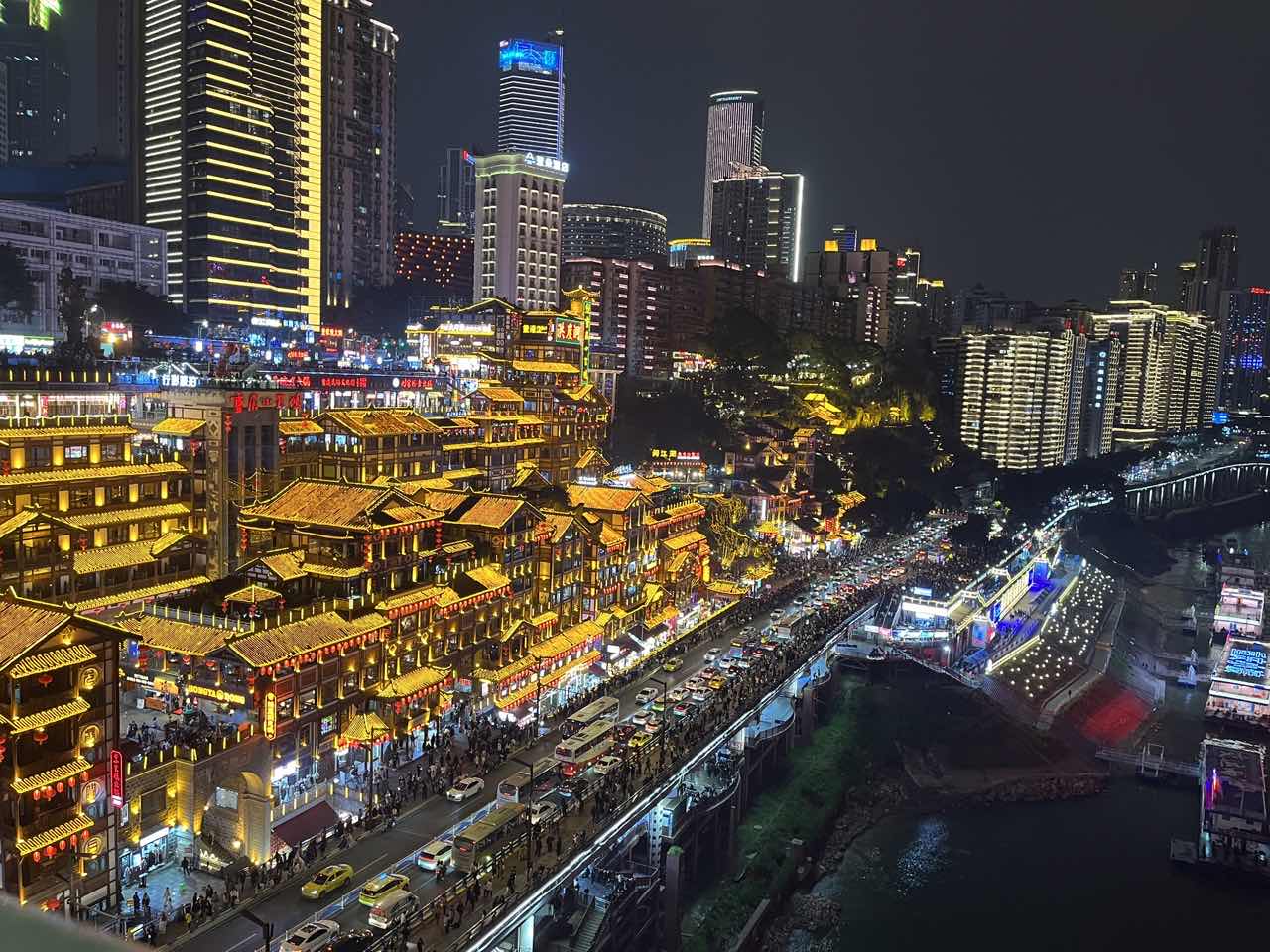 (晚上)洪崖洞码头,千厮门大桥