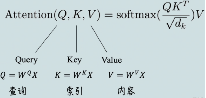 - 2.1.1「水深10m」self-attention:数据建模上下文理解的方式,既一句话的每个单词与这句话的其他单词的计算一下相关性,既数据建模QKV。假设一句话N个单词,每个单词有D个向量表征,那么输入序列=N*D。每个单词都变换成三个矩阵空间,分别是Query/KEY/Value,每个单词都会拿自己的QKV矩阵去问其他单词跟谁最像,这个判断是不是最像的数据方法就是用提问单词的query与被提问单词的key做点乘计算,结果越大越像,越小越不像。这样每个单词都会通过归一化拿到一个与其他单词的相似度的数学衡量。训练时越像就取value(语义)多一点,反之少一点。在知道了像与不像之后,会希望对每个value再补充一些“带上像与不像的关系”的数学表征,也就是最后对每一个单词的语义(value)通过其他N-1个单词的语义(value)做加权的求和作为一个新的表征,权重就是与N-1的各词的QK点乘结果。