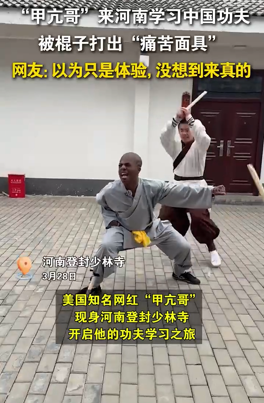 美国网红“甲亢哥”没想到来真的!勇闯少林寺学功夫累出“痛苦面具”,近千万人次观看