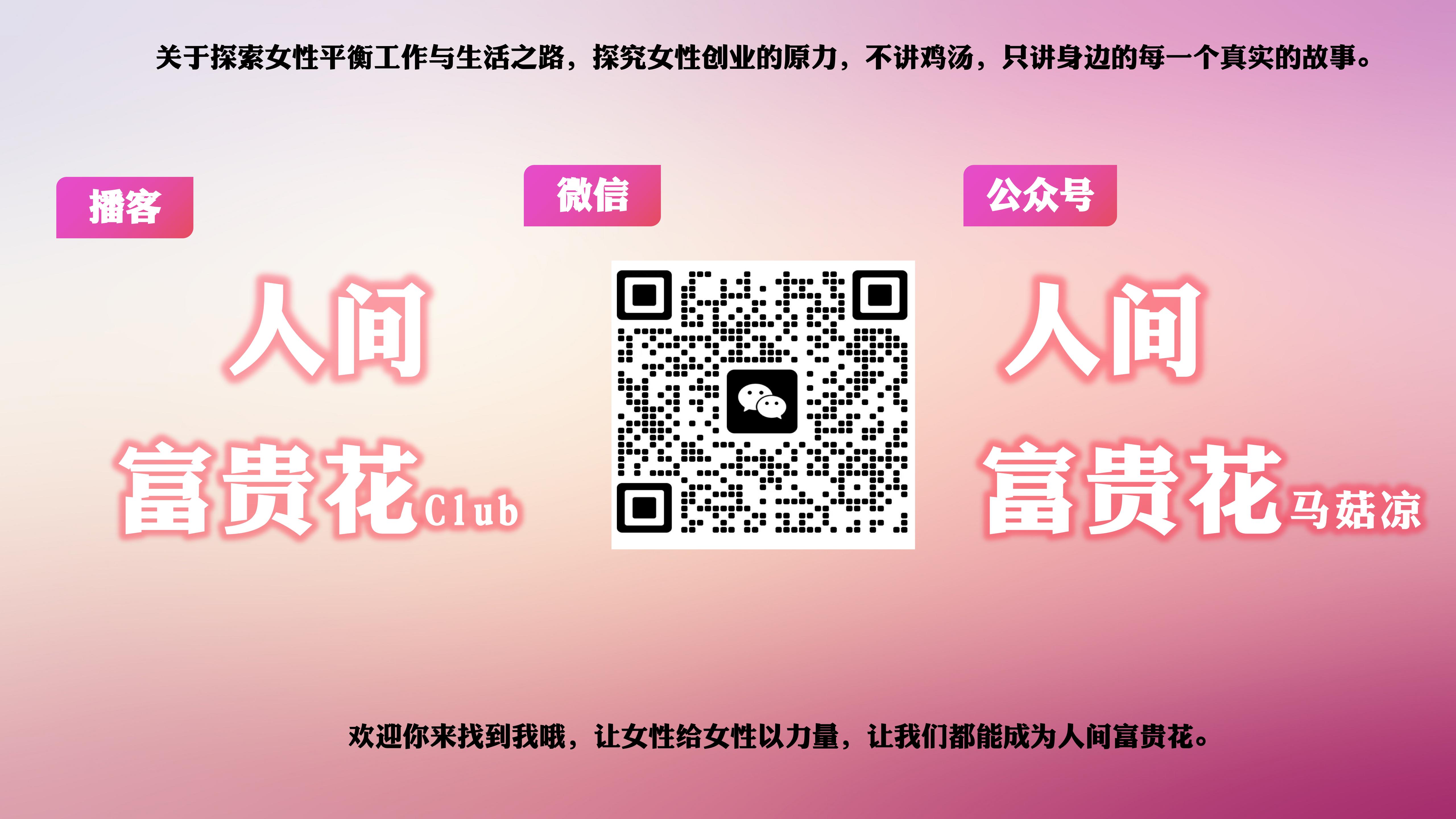 扫描节目简介区二维码,加入「人间富贵花」女性成长社群。如果你有转型故事或创业心得,欢迎成为下期嘉宾,让我们共同记录平凡女性的不凡力量。
