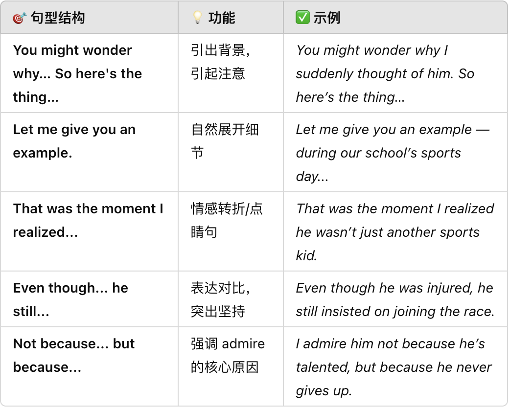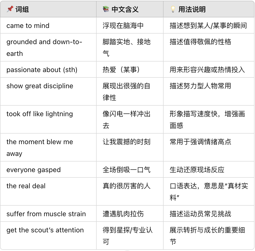 📍适合练习:人物描写 / 故事展开 / 表达钦佩 / 描述比赛情境