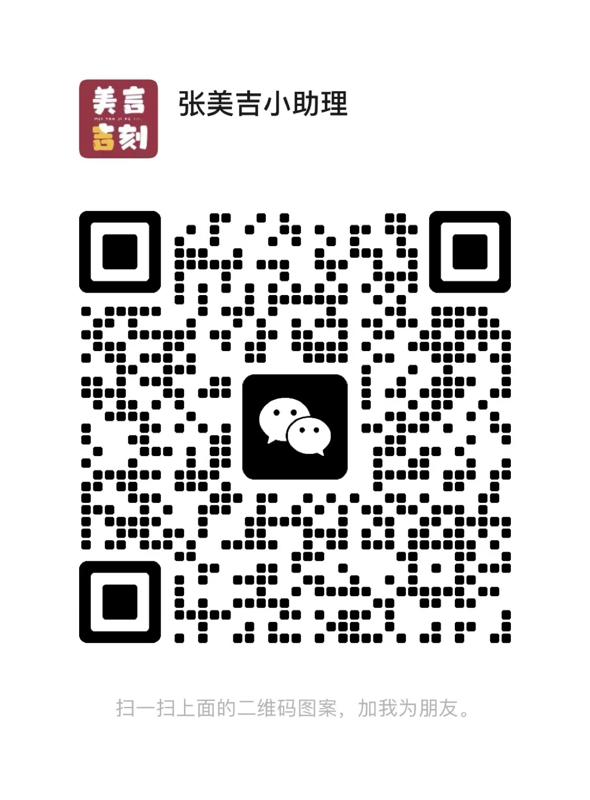 3、正在看机会,想成为我们的顶级人才智库。添加微信号:zmjxzl(张美吉小助理首字母缩写),请备注姓名+目的。小助理将帮您精准对接。
