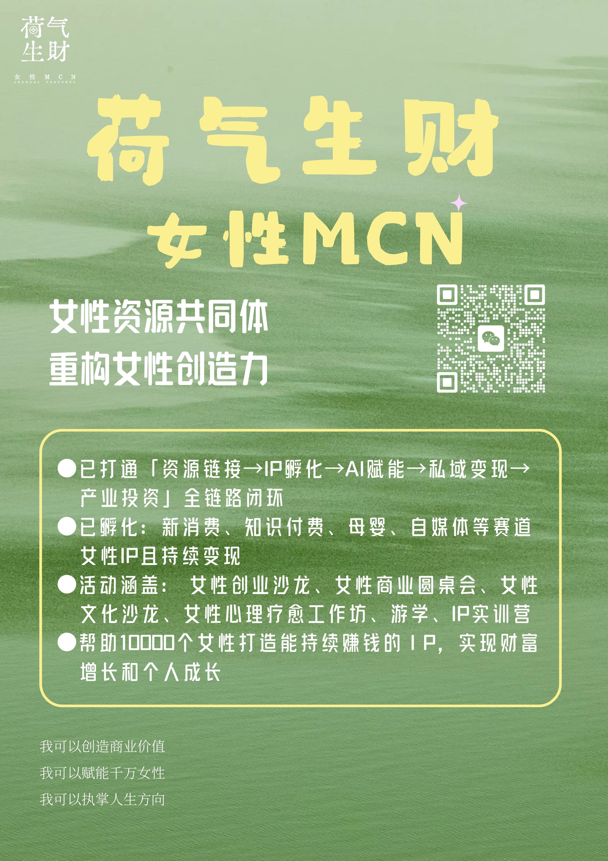 @荷气生财 女性创业社群&MCN 创始人,正在帮助1000个女生找到自我价值定位,建立个人IP并变现