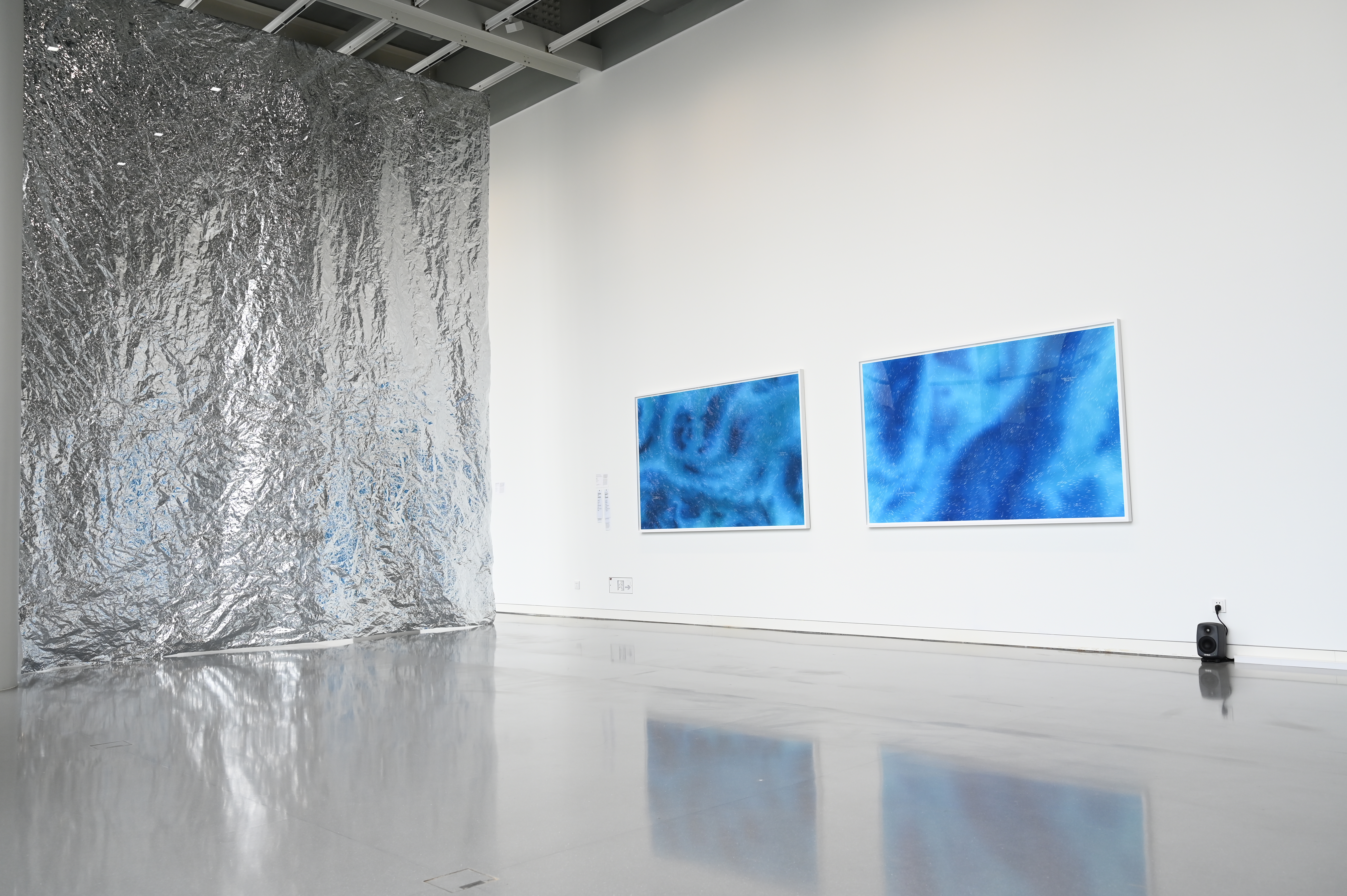 入口处布景(左:詹森斯、弗朗索瓦创作,Golden Section,巨大的镜箔纸;右:《风成图》系列)@场长