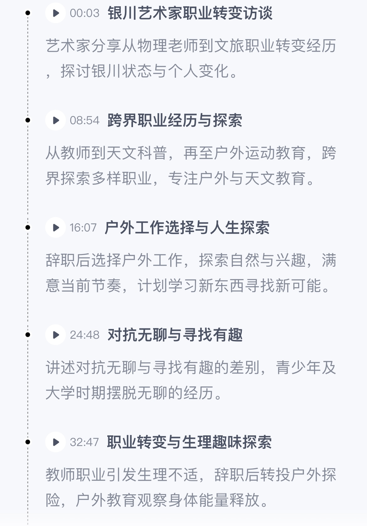 那之后,我们的相约录播客没有成行,今年1月她回来银川,曾经邀约的种子发芽了。她用自己的语速讲着,她换了几个就职机构,都是与户外相关的。听起她的用词、表述,当然还有她从容不迫的面部肌肉,她已经完完全全蜕变成一个成熟且完整的人。同时,这位女士,非常年轻。