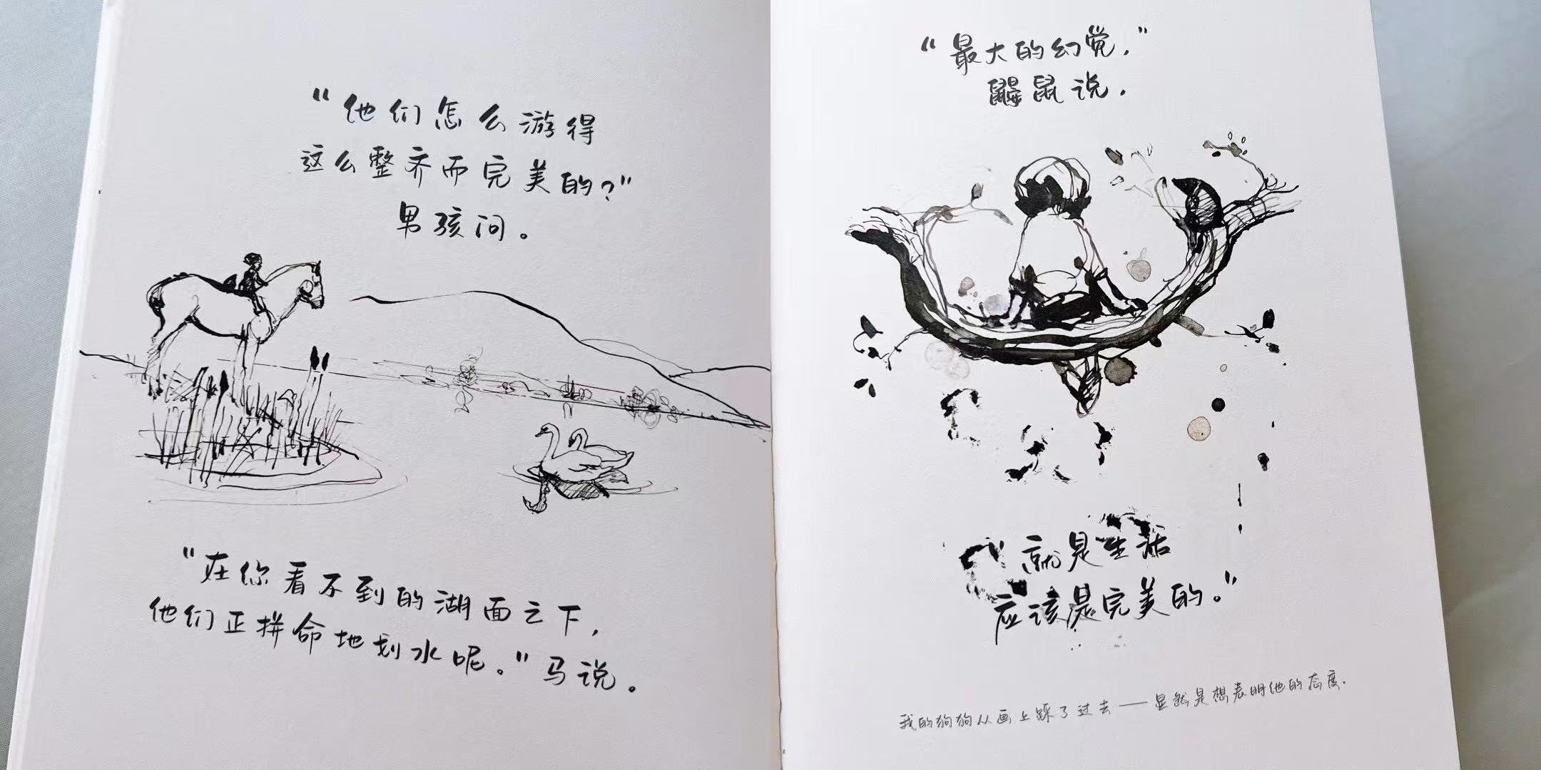 “在你看不到的湖面之下,他们正拼命地划水呢。”马说。