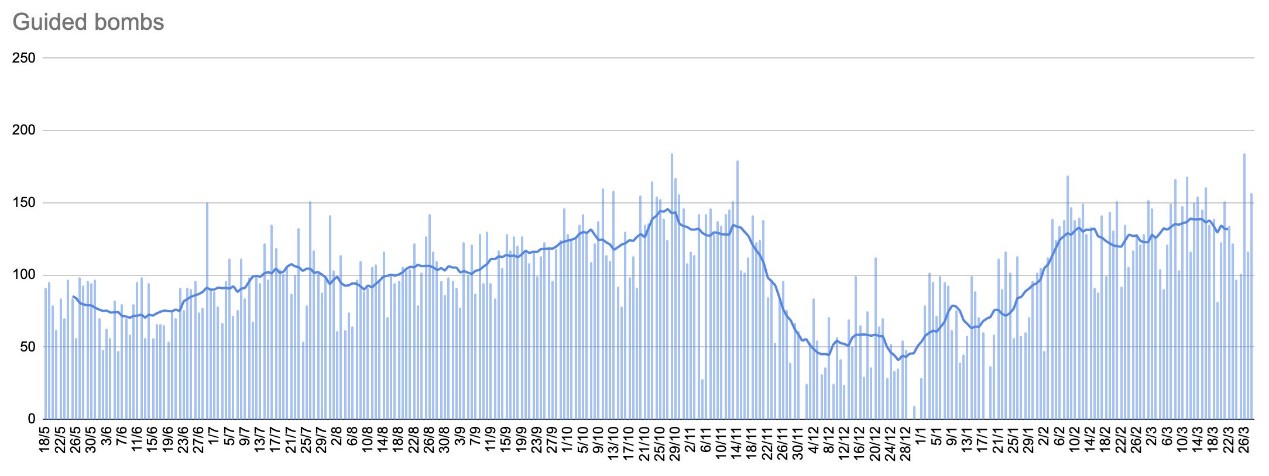 24-25年俄国滑翔炸弹的每日落弹数