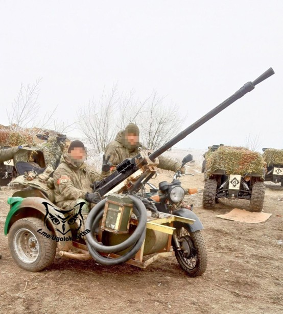 俄军加装14.5毫米高射机枪的挎斗摩托