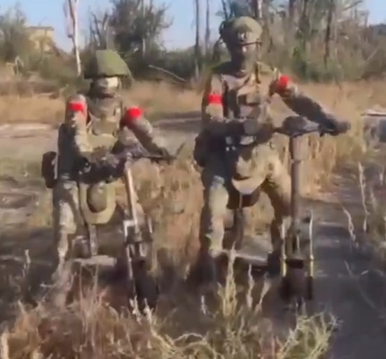 使用电动滑板车的俄军突击部队