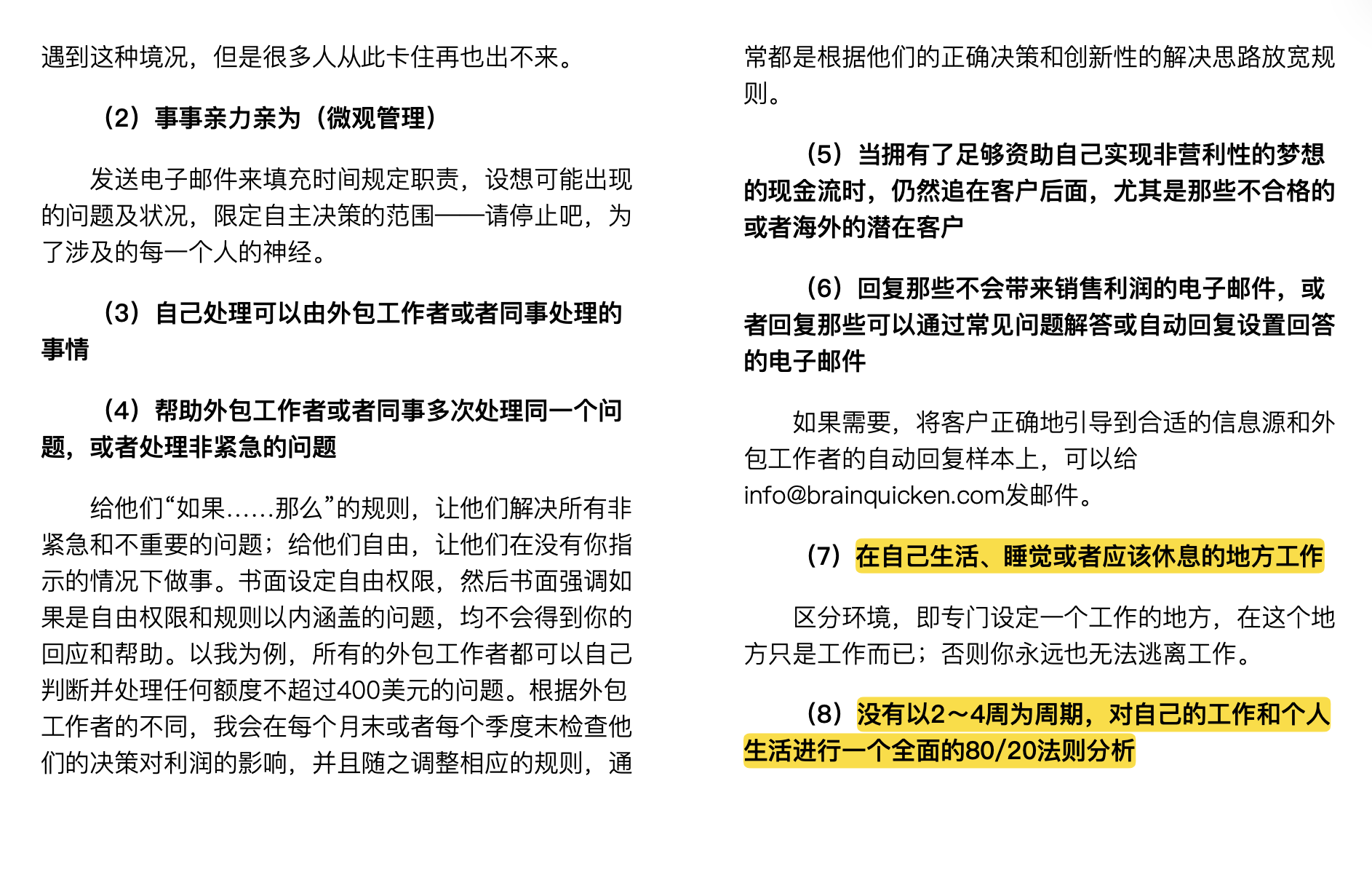 Tim鼓励读者大胆地外包重复性任务(包括生活事务和部分工作),雇佣虚拟助理,把精力留给更有价值的事。
