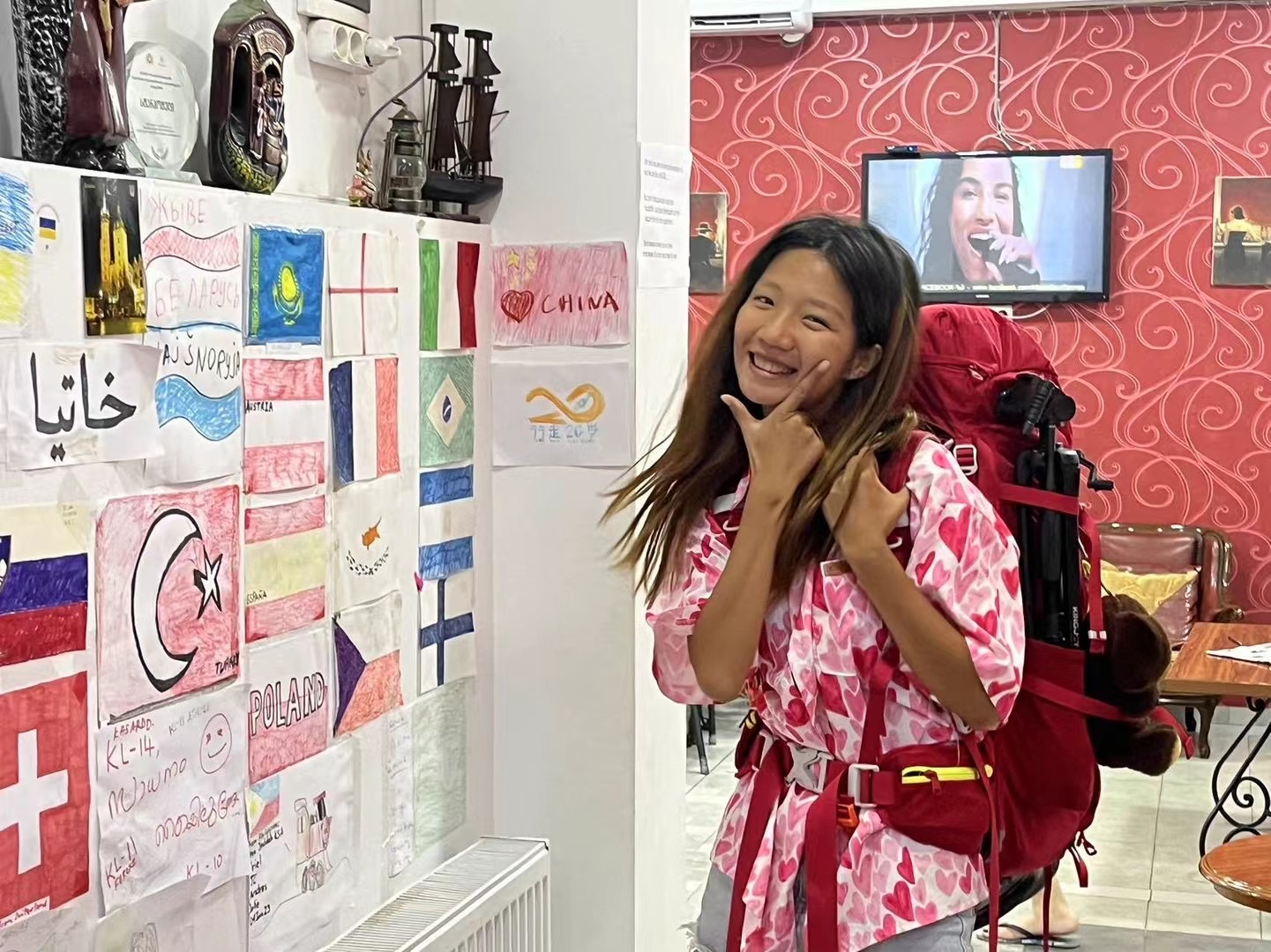给格鲁吉亚一家青旅增添中国和行走20岁的旗子