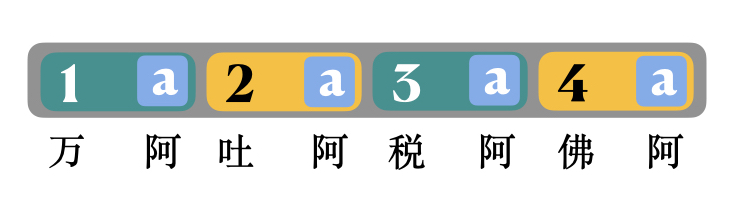 阿(and / a):此处表示整拍之间的”半拍“(1/8音符),见下图: