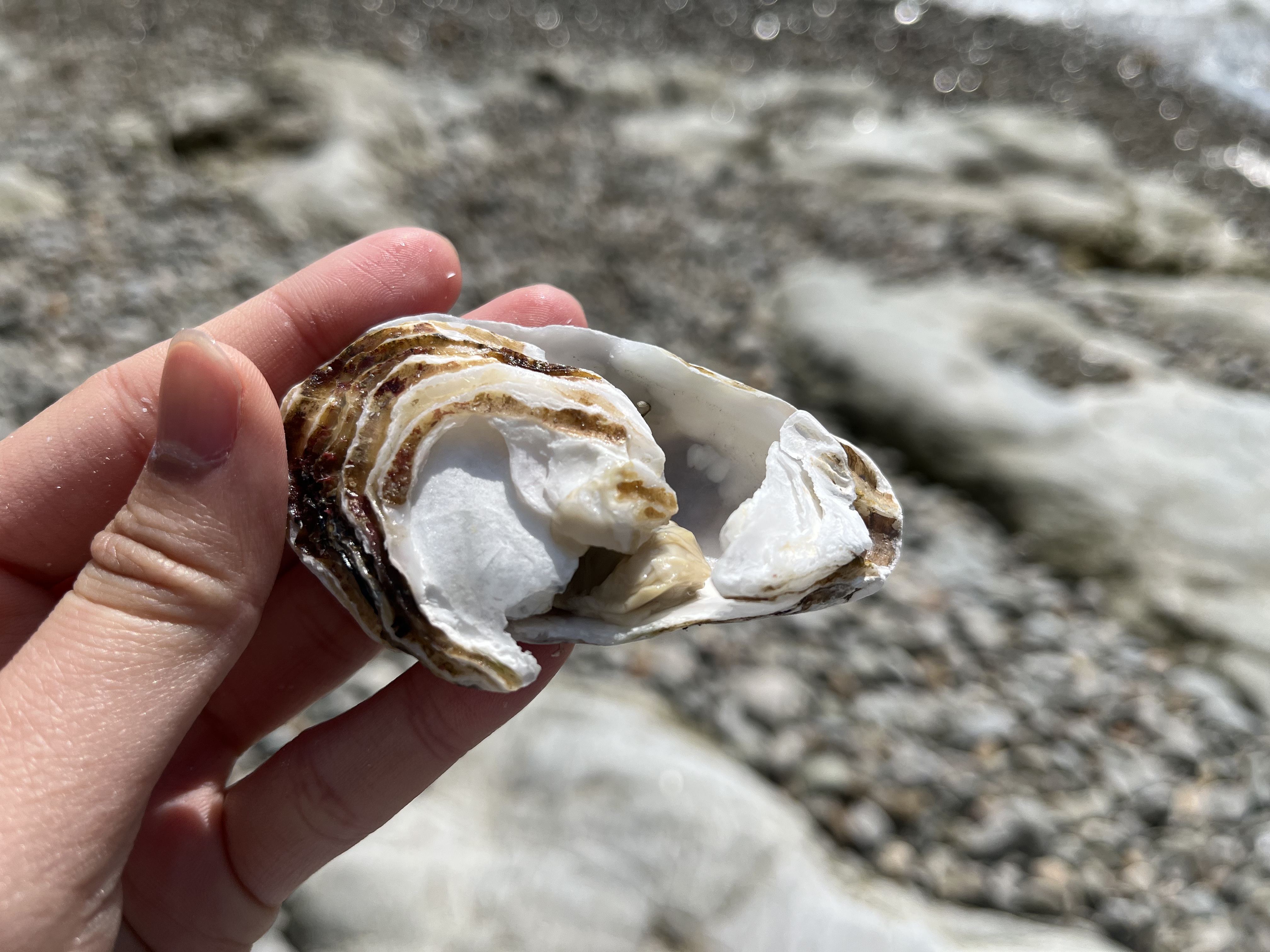 晨曦沙滩,两侧是石头山,中间空地,可以让海水涌入。