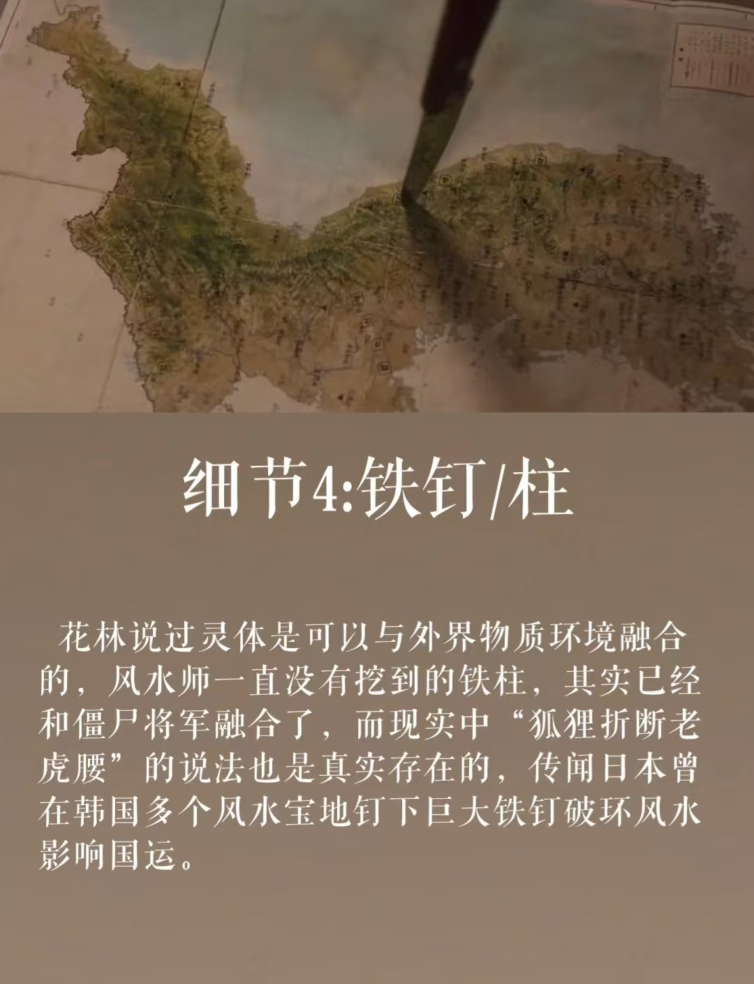 金相德通过深入调查,发现坟墓位置在北纬38°朝韩分界线附近,且与殖民历史有关。朴家祖先曾是一位韩奸,在🇯🇵占领朝鲜半岛期间,背叛同胞,获得了金钱与权力。为了掩盖这段耻辱的历史,朴家人将祖先埋于大凶之地。坟墓下方,还埋有🇯🇵妖僧(狐妖奇顺爱)钉入的铁钉,意在破坏韩国的风水和国运。