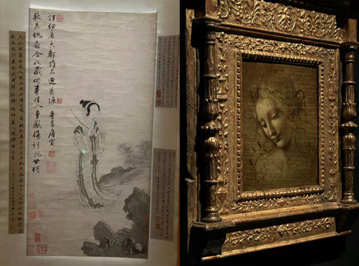 - 达芬奇《头发飘逸的女子》& 唐寅《秋风纨扇图》