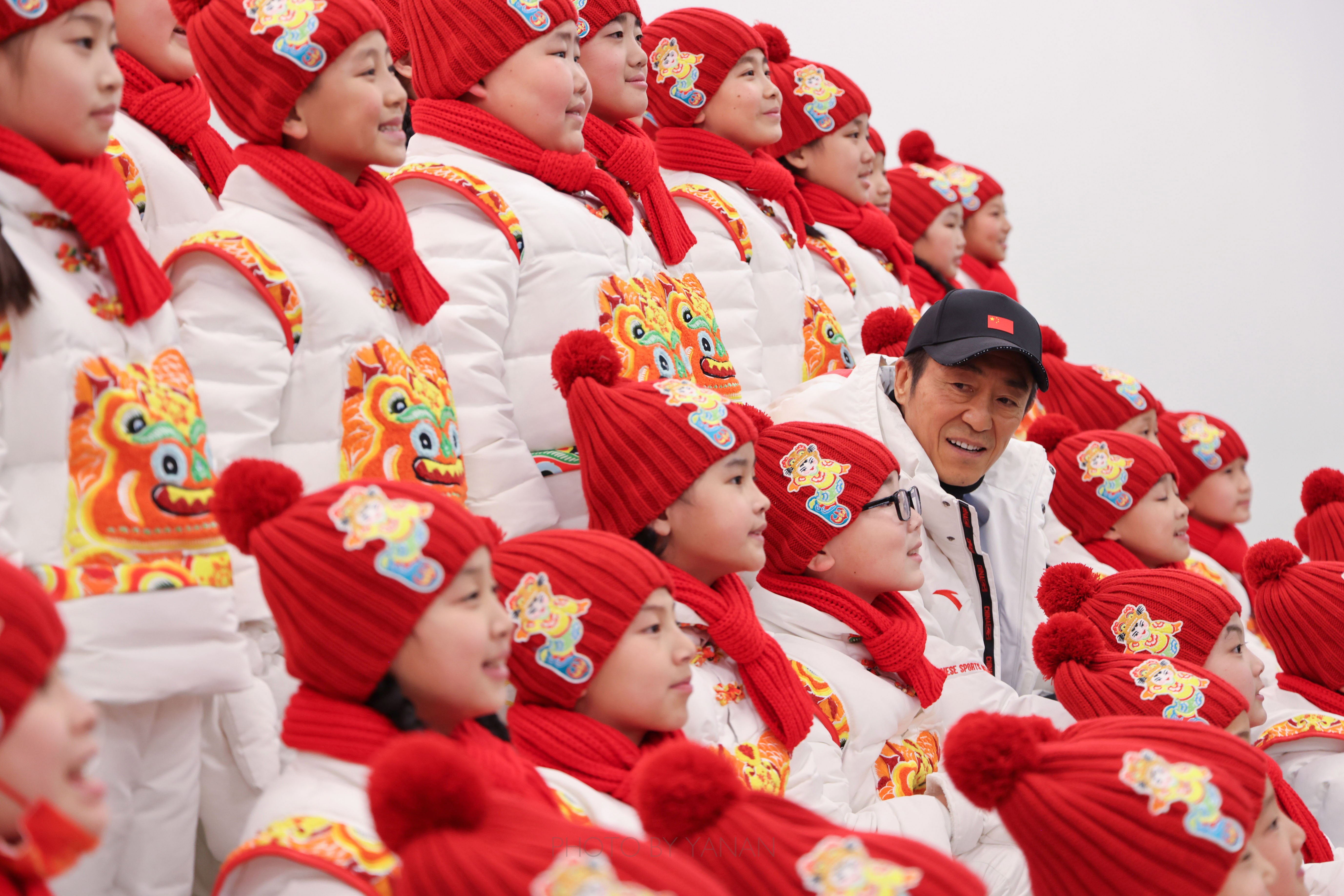 4️⃣ 2022年1月15日,在国家体育场(鸟巢)后台,马兰花儿童合唱团的孩子们彩排前与北京冬奥会开幕式总导演张艺谋合影。马兰花儿童合唱团在北京奥运会开幕式上演唱希腊语奥林匹克会歌。