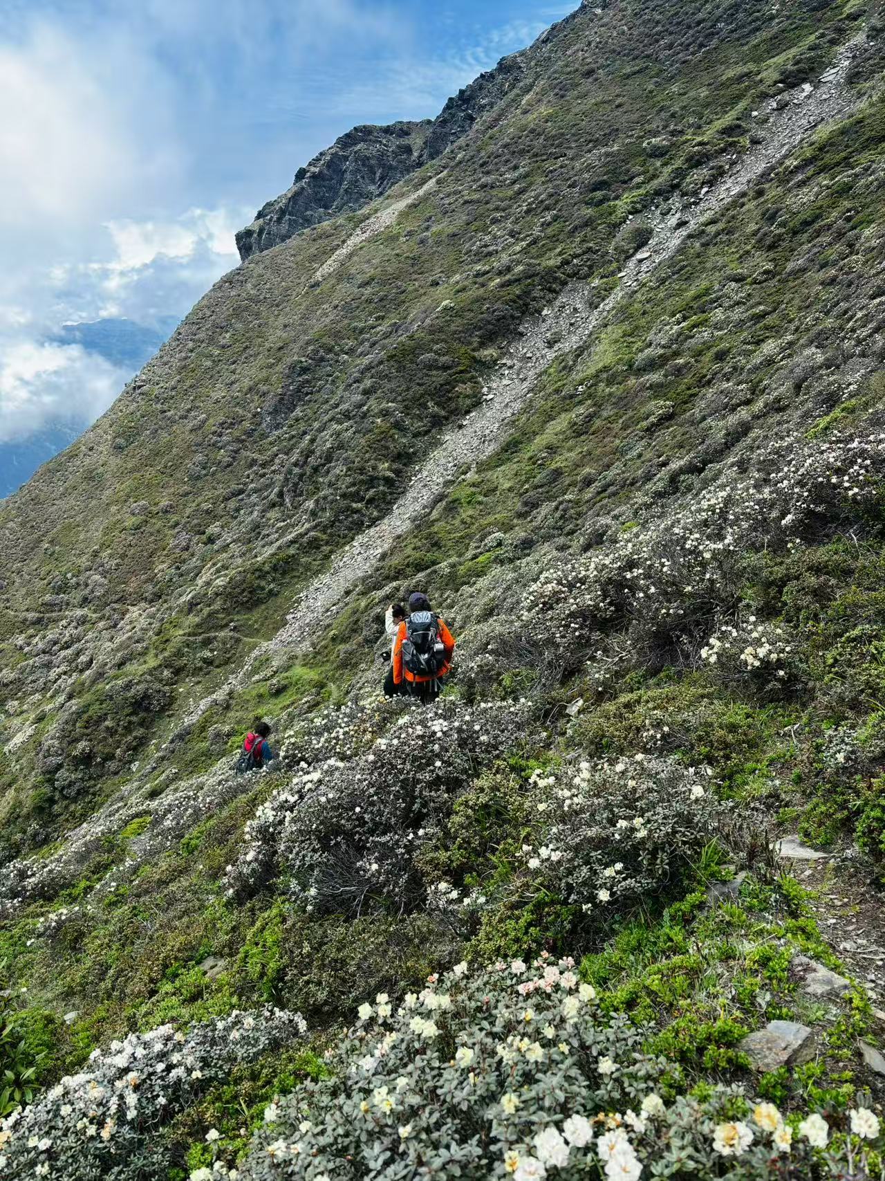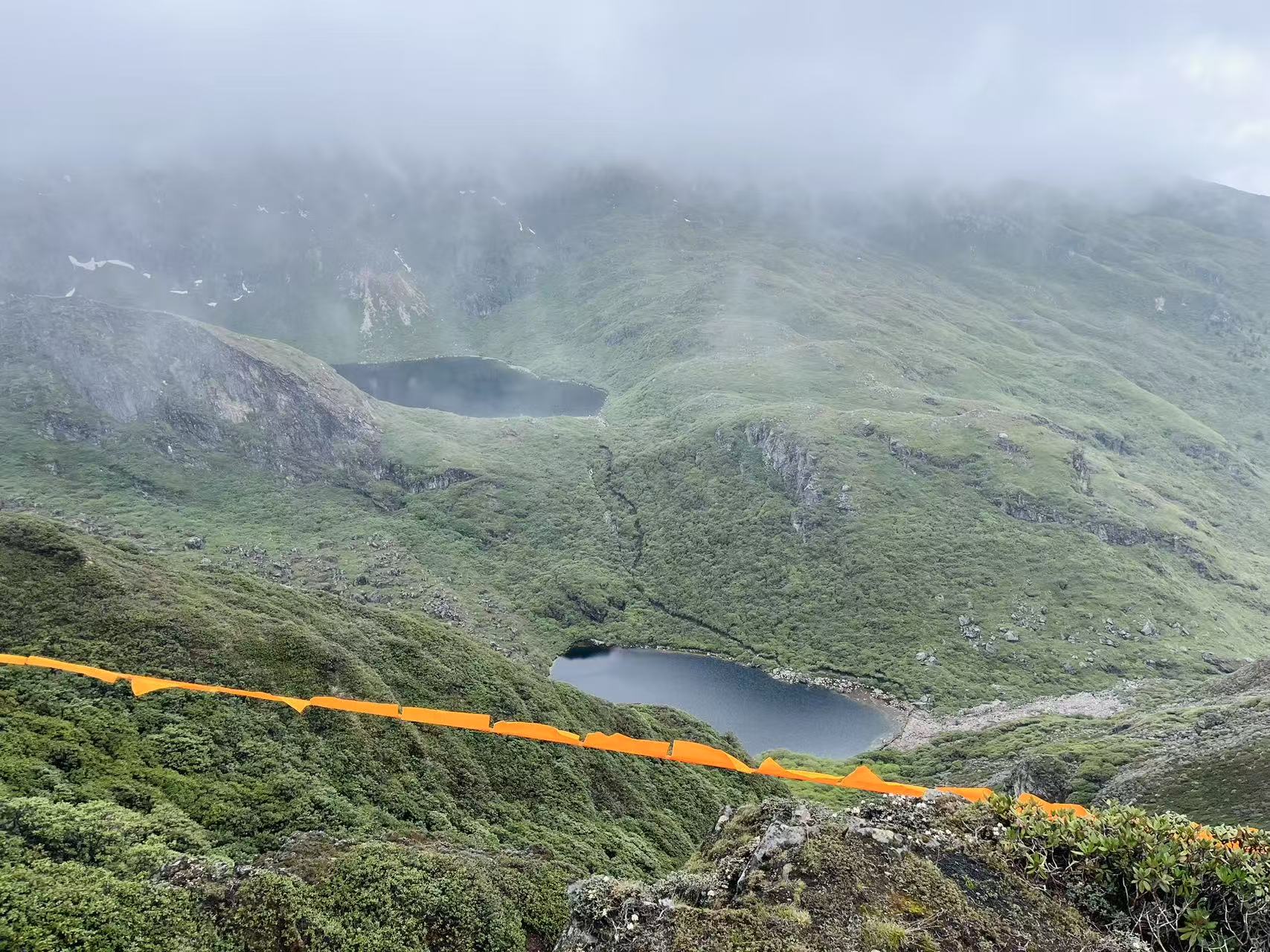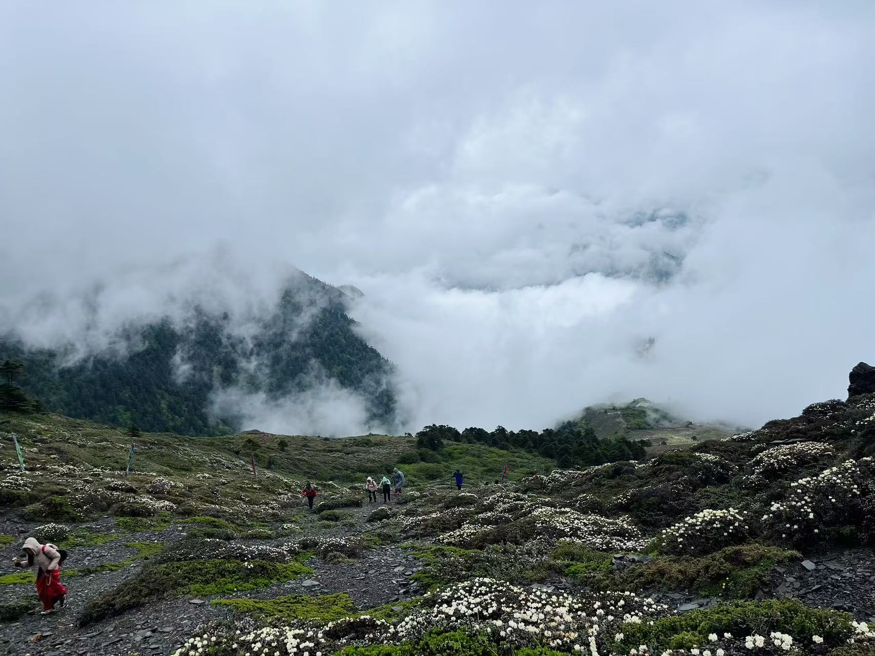 *三色湖:位于山南市洛扎县拉康镇卡久寺景区,三色湖既三个颜色的湖,分别是白色多吉玉珍拉措、咖啡色多追拉姆拉措和黑色纽格儿拉措。多吉玉珍拉措是西藏三色护法仙女之白色护法仙女多吉玉珍的圣湖,多追拉姆拉措是西藏八大天葬台护法仙女的圣湖,而纽格儿拉措是布丹国和卡久寺护法神的圣湖。徒步路线来回大概8公里左右,海拔从4100米左右会爬升到4300米左右,我们大概用了6个小时左右。沿途风景秀丽、云雾缭绕、灌木丛生。长满主要以杜鹃(高山杜鹃和高原矮杜鹃)为主的各种五颜六色的花朵,真的就是我梦里见到的花海的样子!