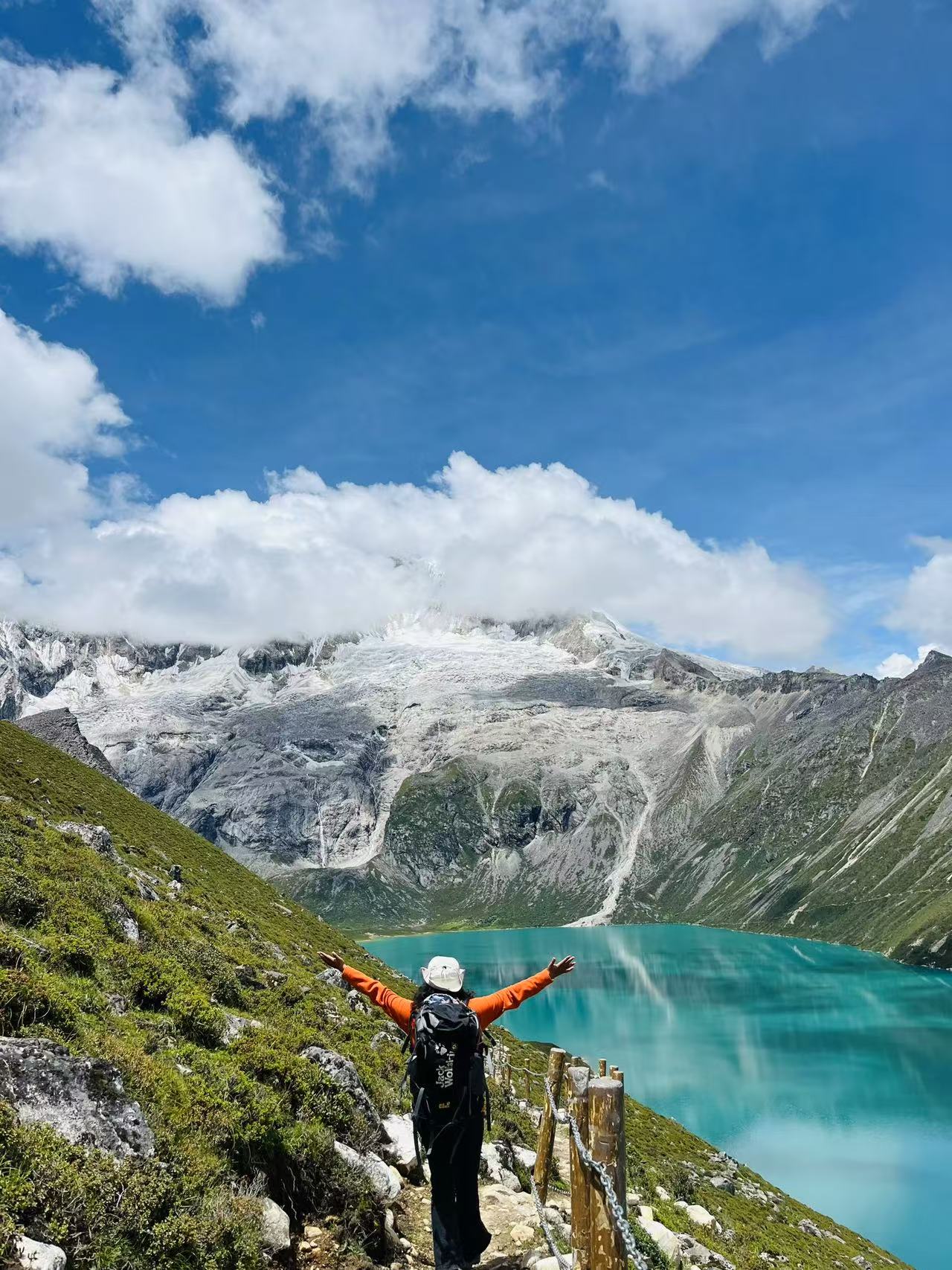 位于山南市洛扎县,白玛林措和海拔7538米的库拉冈日山(山南第一高峰)交相辉映。雪山高耸入云,湖泊清澈见底,再加上西藏独有的蓝天,整个画面特别震撼。不断环湖的过程中会离库拉冈日越来越近,从山上下来的冰川湖潺潺流淌,冰川湖流淌的声音也会越来越清晰。生态环境和景色不像那拉错(我上一个笔记有介绍哦)徒步路线那样丰富,但是在不同的位置,山和湖能够给人不同的震撼。整体徒步12公里左右,难度中等。