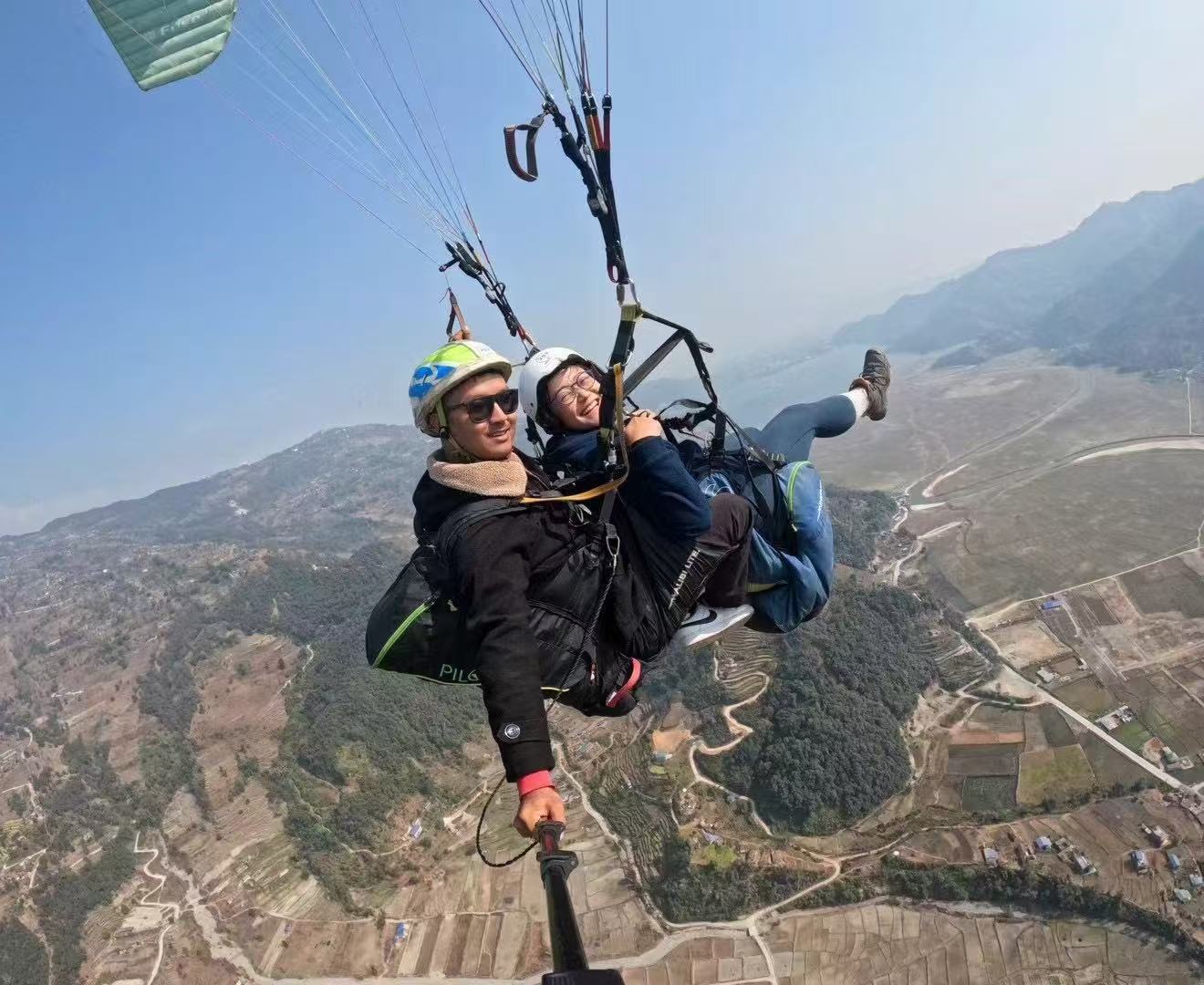 (徒步结束后在博卡拉体验人生第一次滑翔伞)
