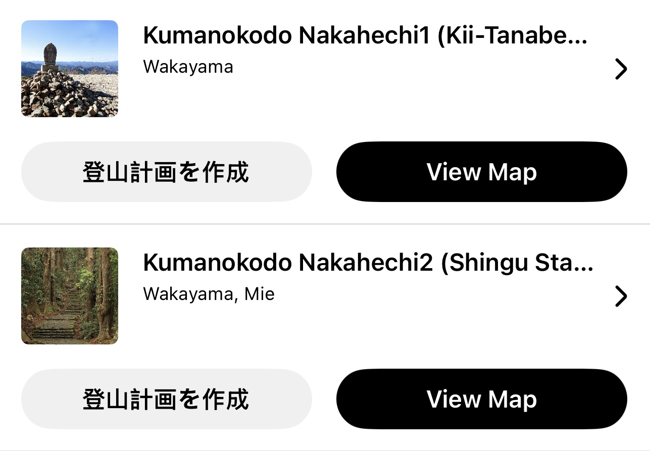 熊野古道徒步必备APP:YAMAP,以及建议提前下载的地图如下(中边路):