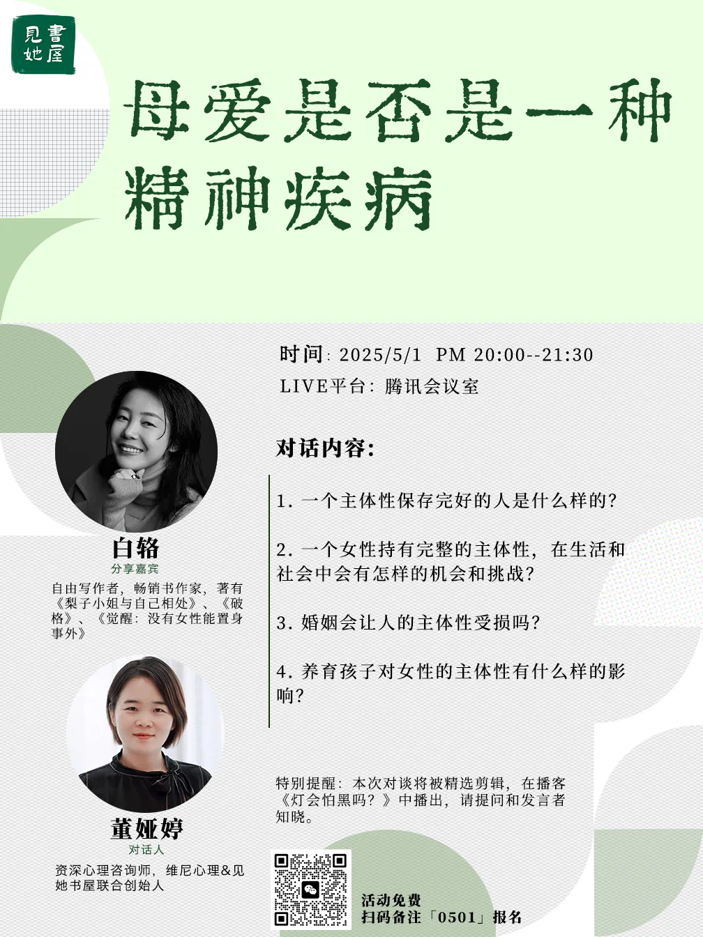 号外:5月1日的对谈活动,欢迎朋友们参加😄