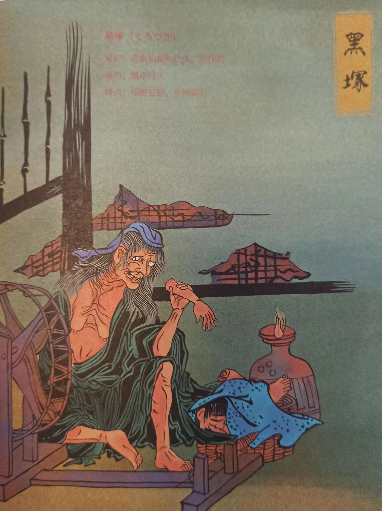 - 安达原鬼婆-这幅画出自鸟山石燕的《画图百鬼夜》