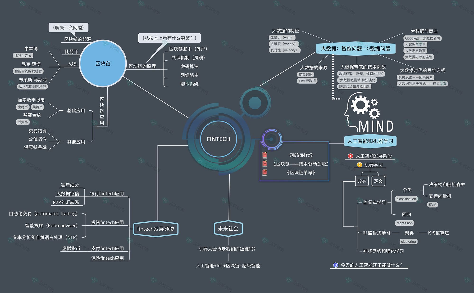 欢迎回来,我们继续第二个板块--Fintech探索系列的内容下面我们进入区块链的第3节;本节主要内容:区块链的应用--基础应用(加密数字货币、智能合约);其他应用(交易结算、公证防伪、供应链金融)区块链相关人物--中本聪、尼克 萨博、布莱斯 马斯特为了方便大家理解,我们把第二个板块--Fintech探索系列的内容,也做了一个思维导图。大家可以结合思维导图去听本节内容。希望大家能在阅读中有所思考,遇见那个更好的自己~
