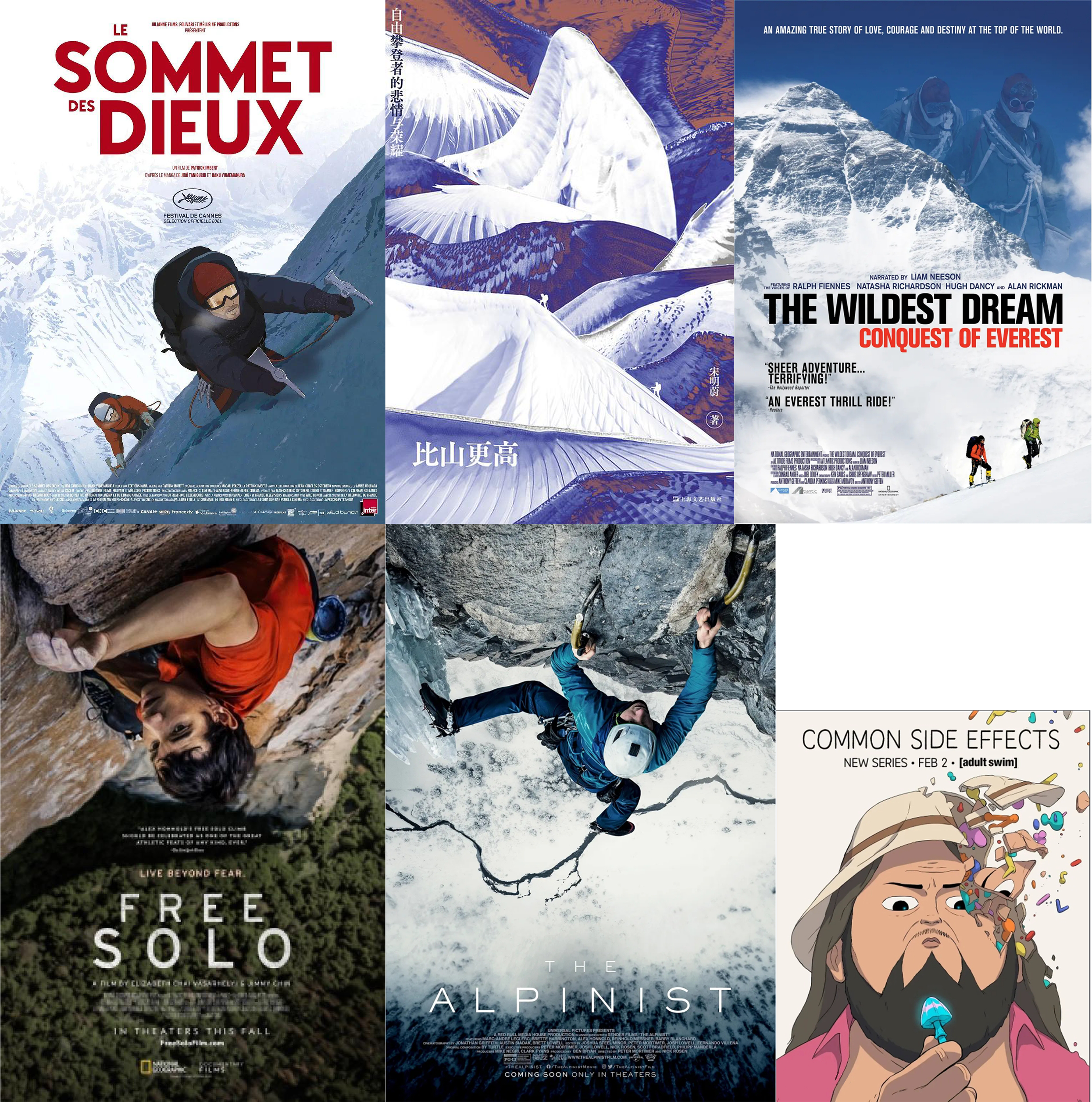 本期推荐:《神之山岭》《比山更高》《最狂野的梦想:征服珠峰》(THE WILDEST DREAM CONQUEST OF EVEREST)《徒手攀岩》(FREE SOLO)《登山家》(THE ALPINIST)《常见副作用》(COMMON SIDE EFFECTS)