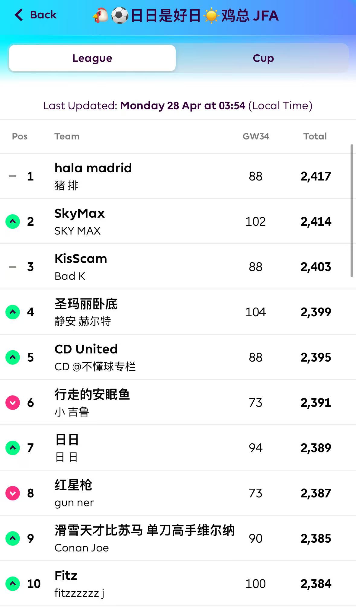 【鸡超积分榜】: