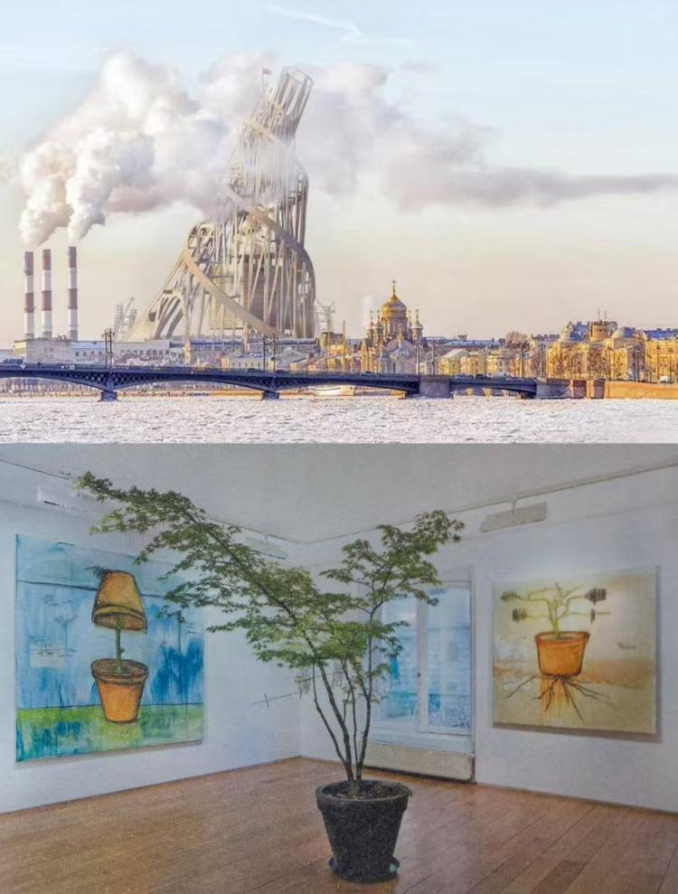 图为:塔特林设计的第三国际纪念碑;伊贝尔的“天线树”